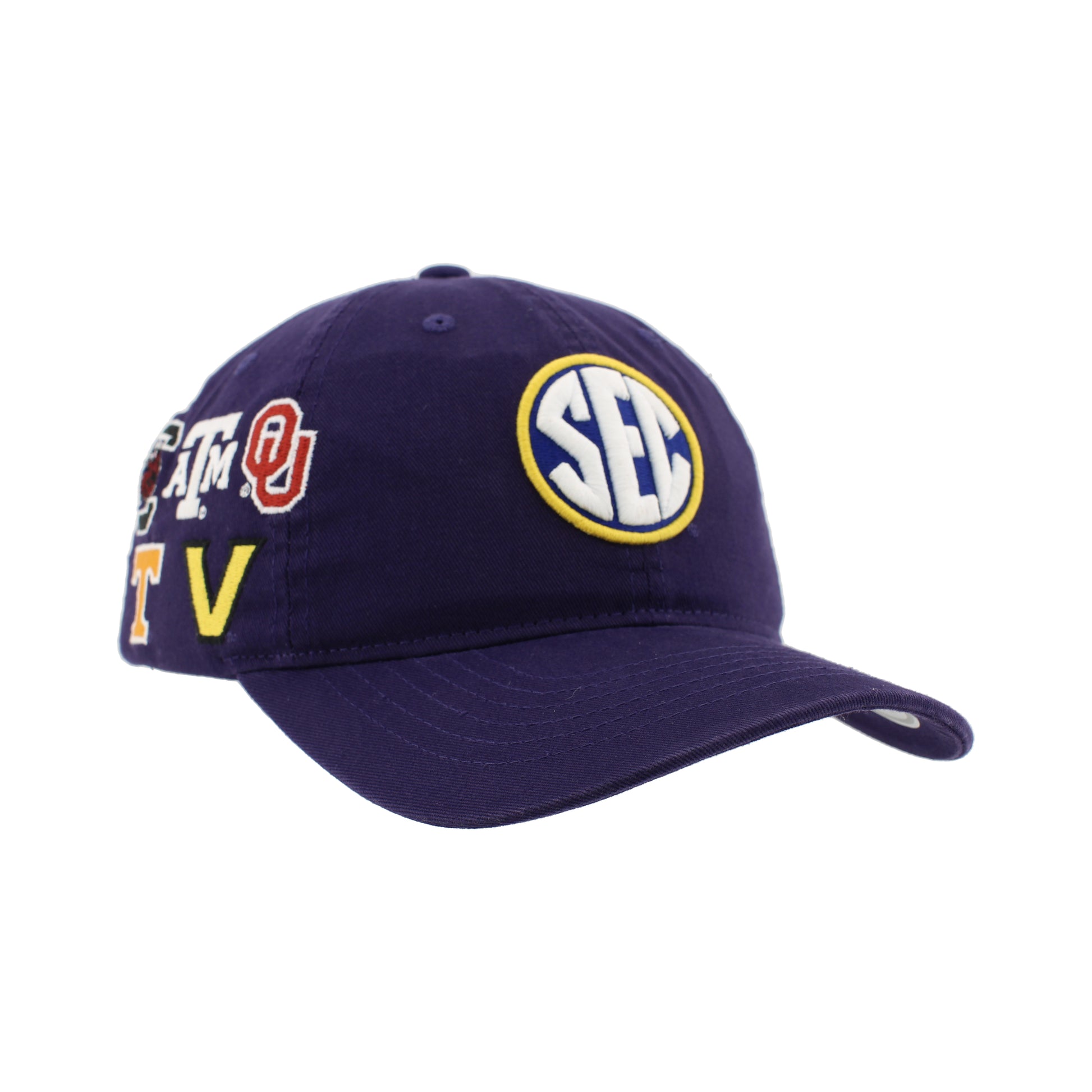 Be game day ready with this SEC hat from Zephyr that features the 16 schools that make up the Southeastern Conference, including new members Texas and Oklahoma.
