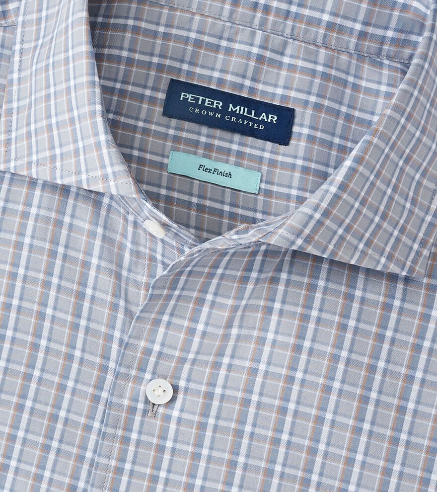 This sport shirt is made from an exceptionally soft cotton and is designed with our signature Flex Finish, a process that allows for stretch comfort in a full natural fiber fabric. Finished with a spread collar, French placket, mother-of-pearl buttons and mitered cuffs.