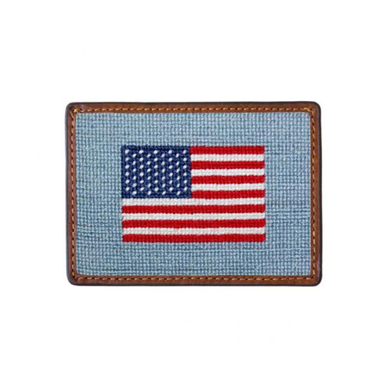 American Flag Needlepoint Card Wallet in Antique Blue by Smathers & Branson