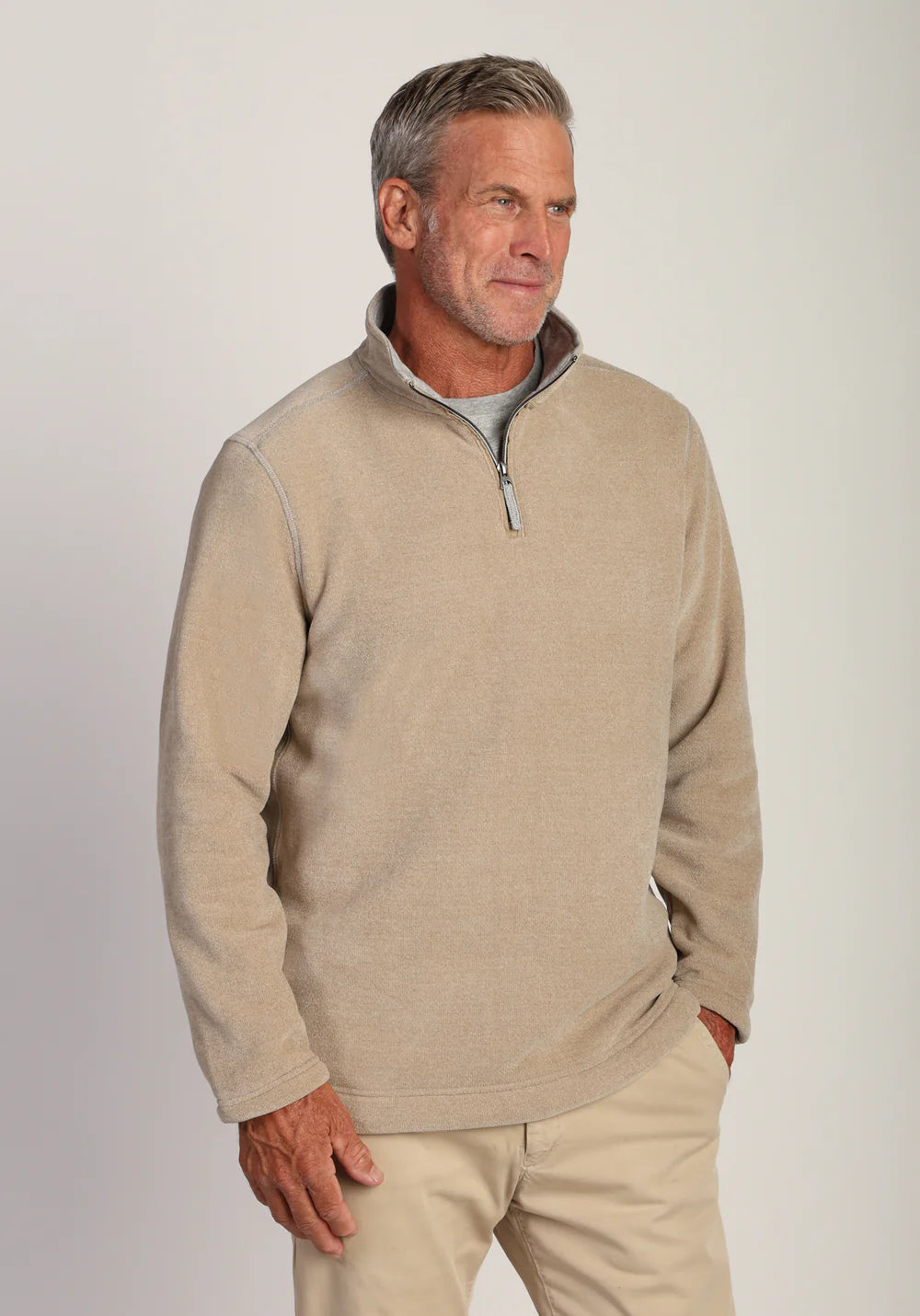 Apres Lux Chenille 1/4 Zip Pullover in Oatmeal by True Grit