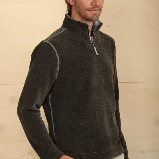 Apres Lux Chenille 1/4 Zip Pullover in Olive by True Grit