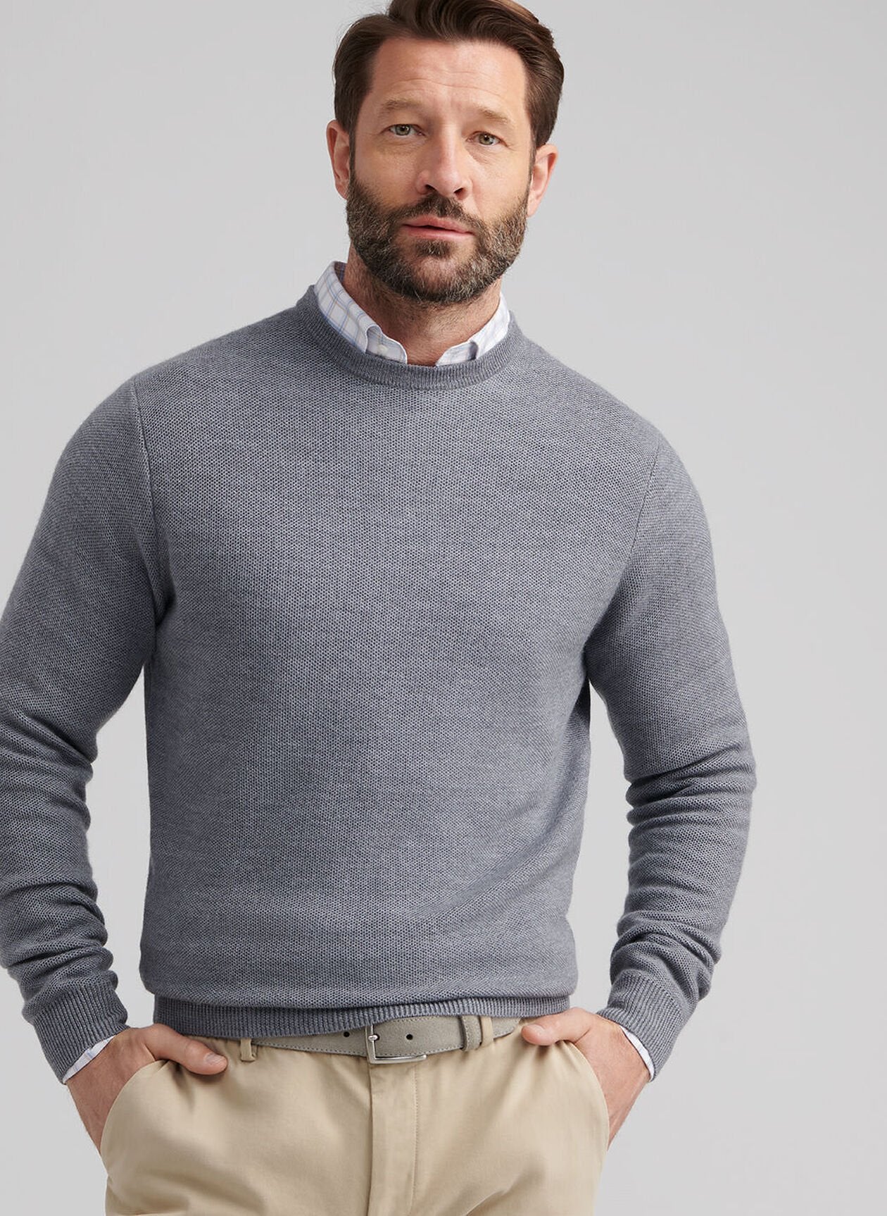 Autumn Crest Honeycomb Crewneck Sweater in Gale Grey by Peter Millar
