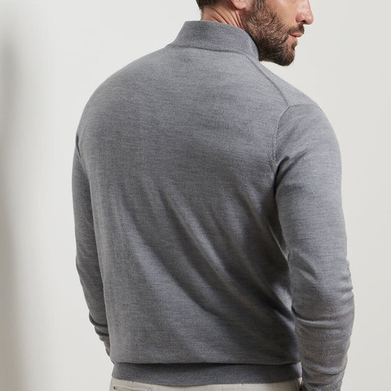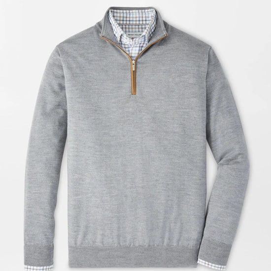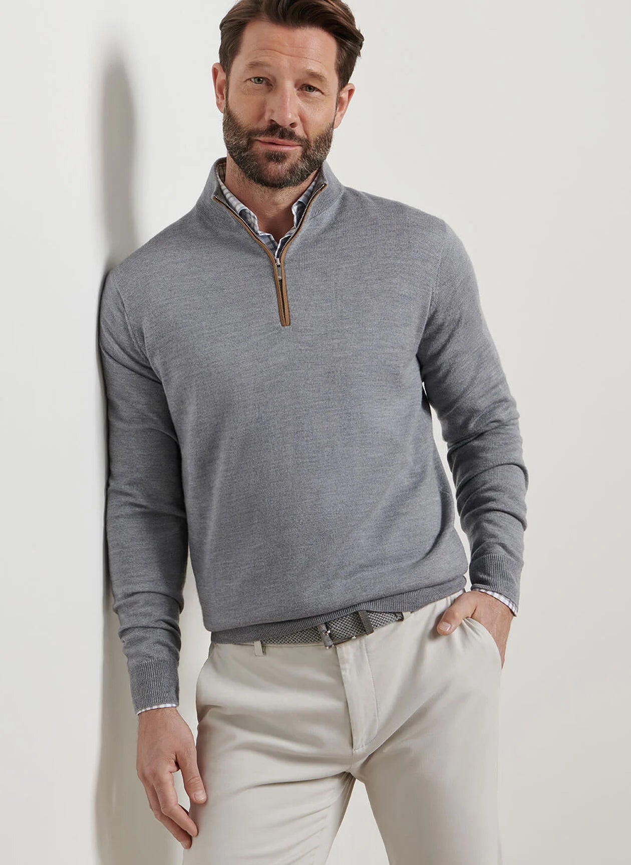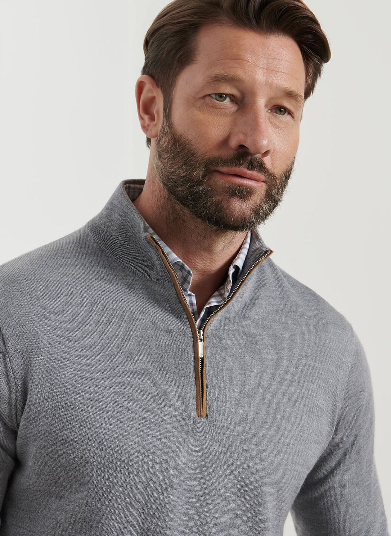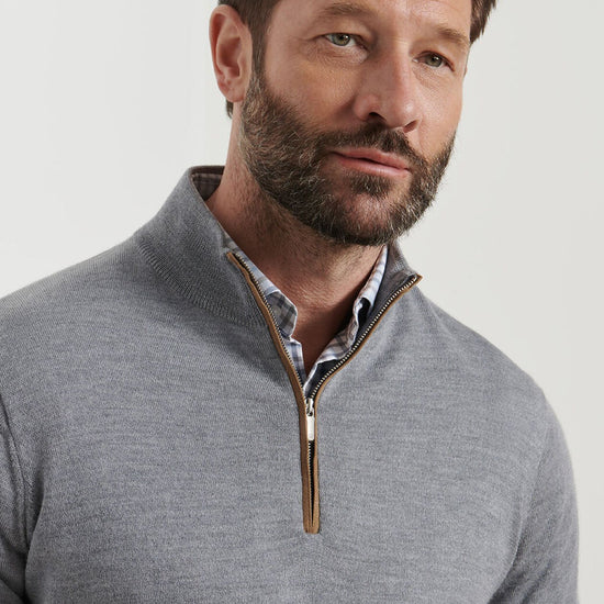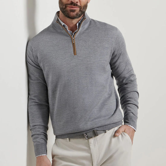 Autumn Crest Suede Trim Quarter-Zip in British Grey by Peter Millar