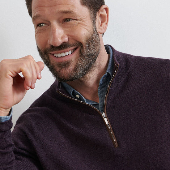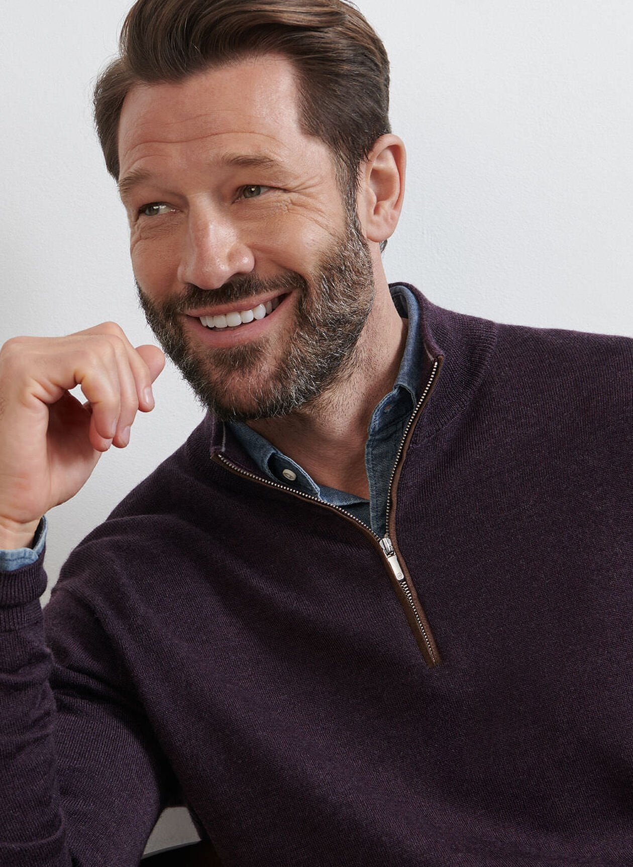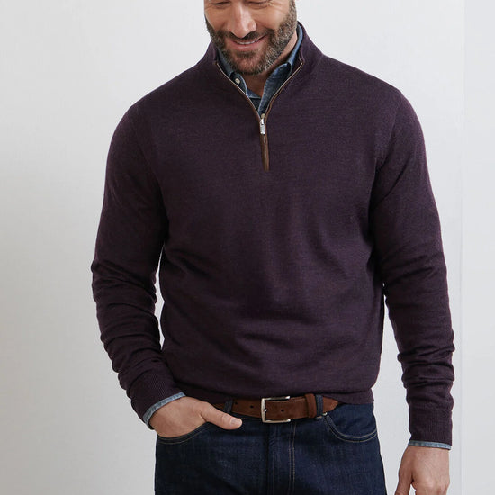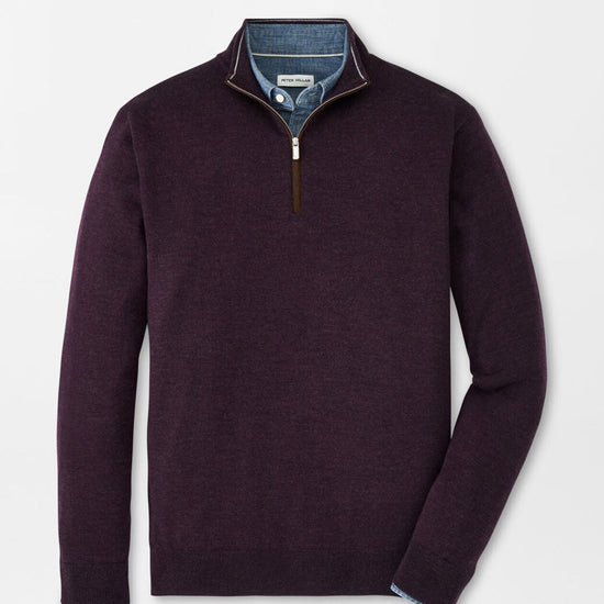 Autumn Crest Suede Trim Quarter-Zip in Midnight Grape by Peter Millar