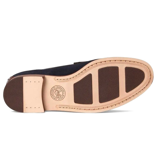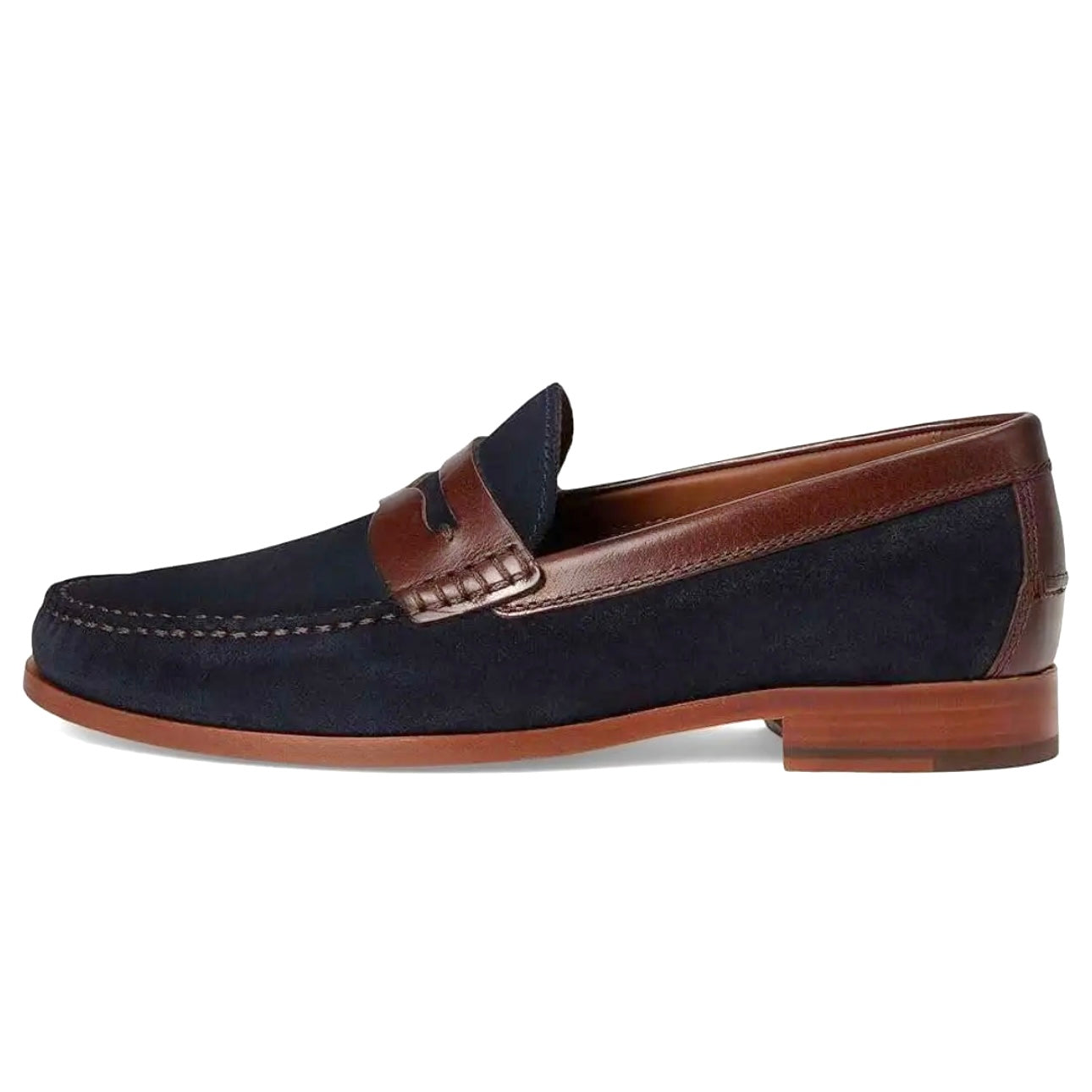 Baldwin Penny Loafer in Navy Waxed English Suede/Brown Full Grain Leather by Johnston & Murphy