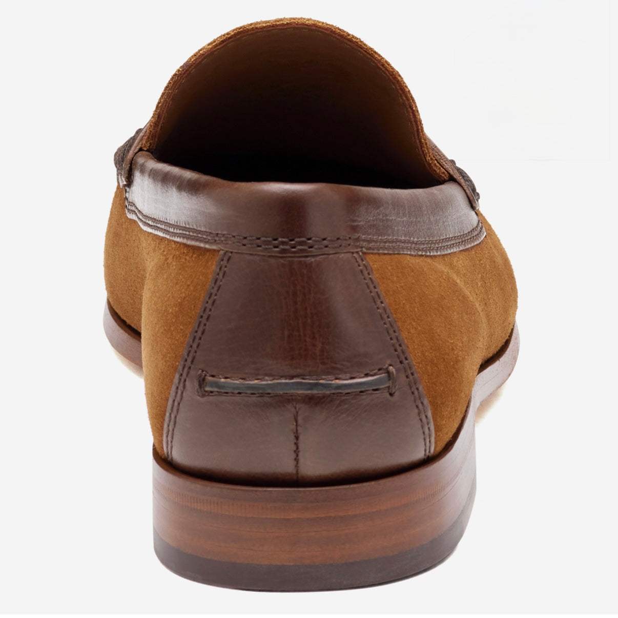 Baldwin Penny Loafer in Snuff Waxed English Suede/Brown Full Grain Leather by Johnston & Murphy