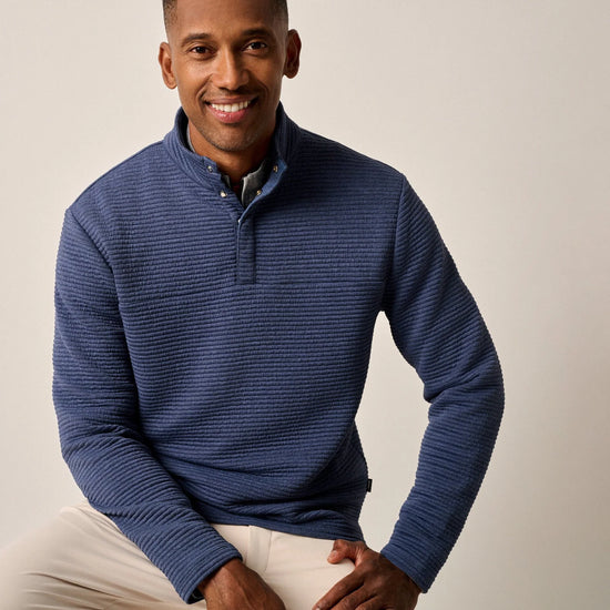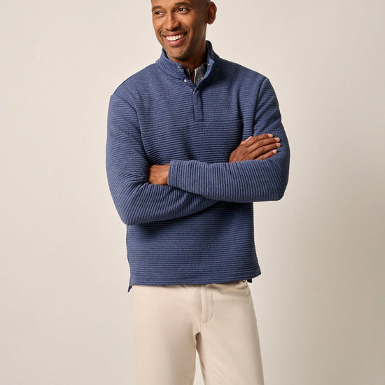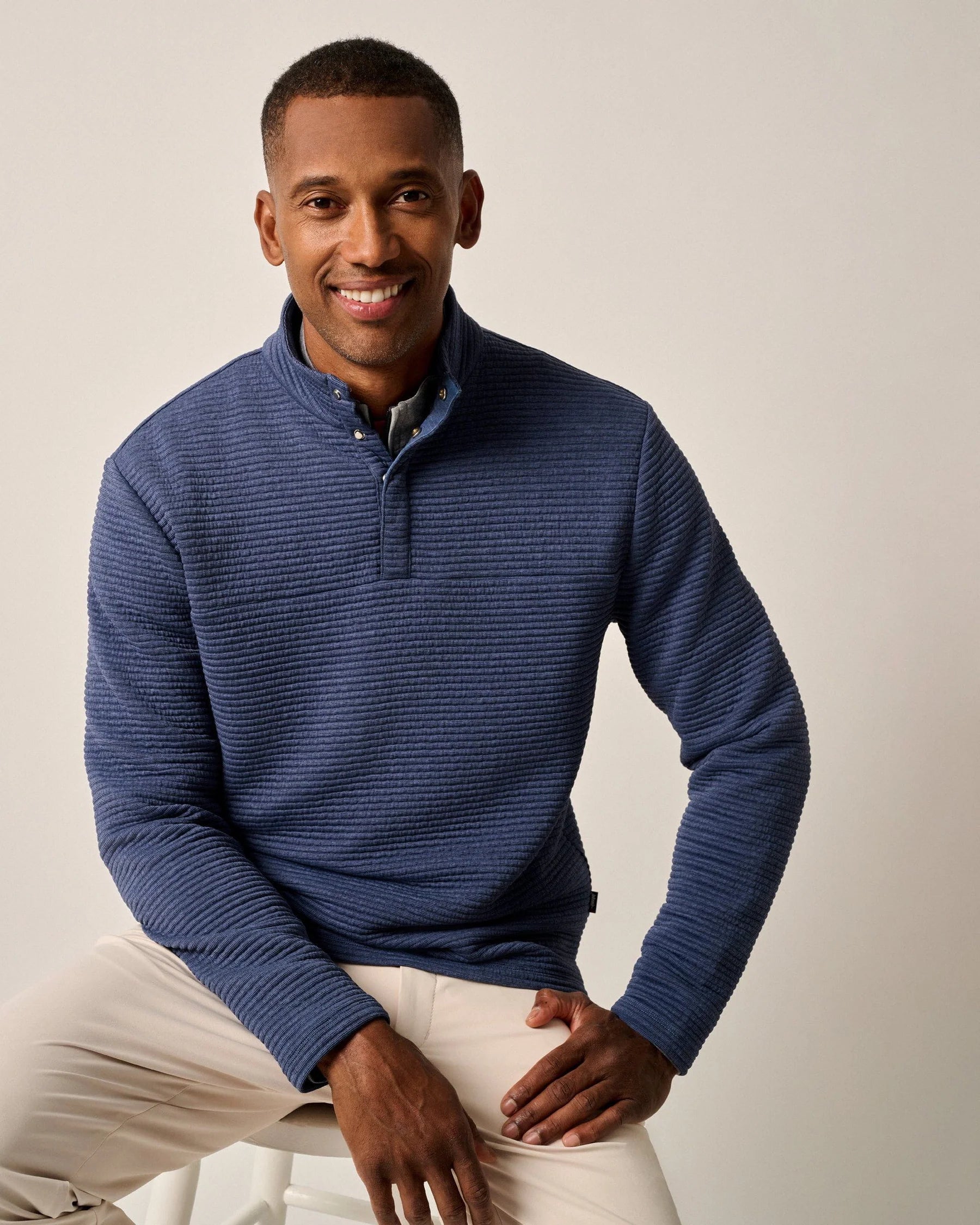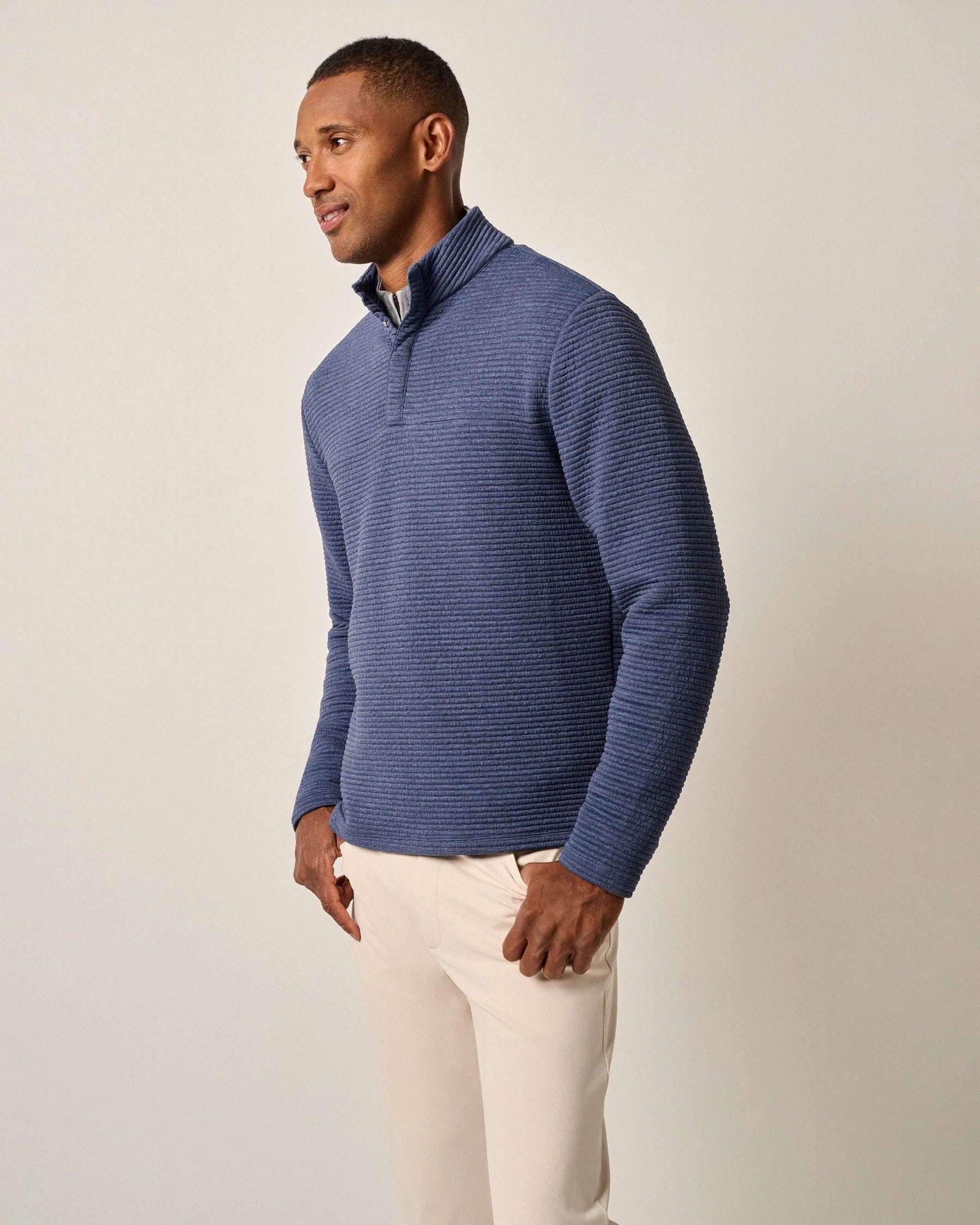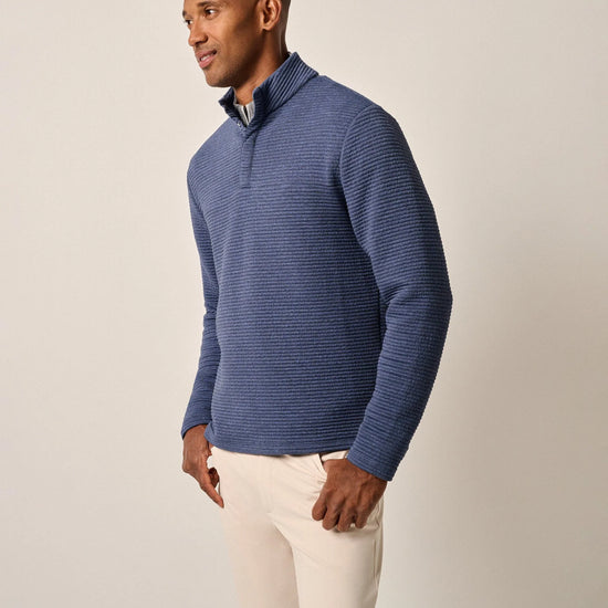 Benjy Heathered Henley Pullover in Navy by Johnnie-O