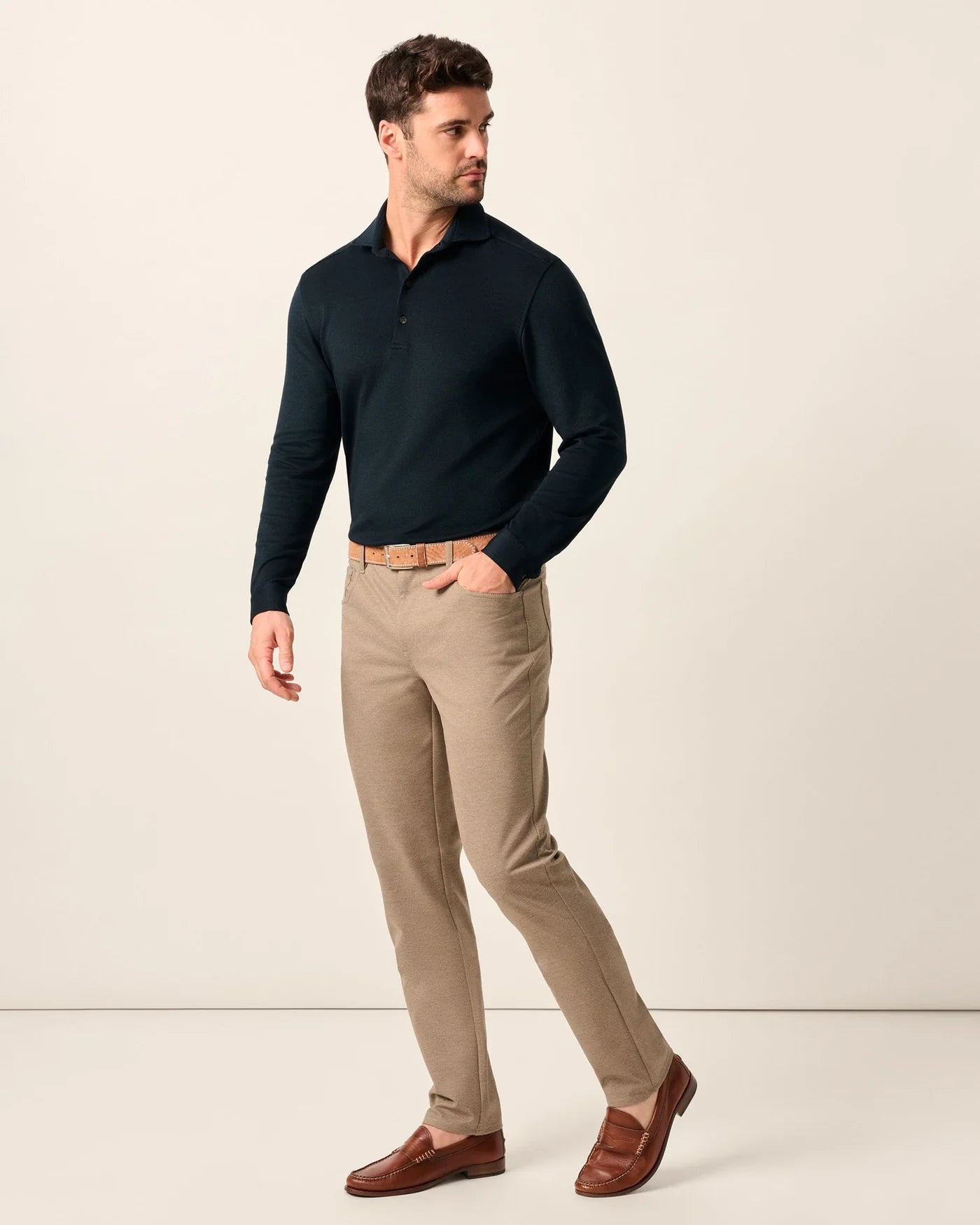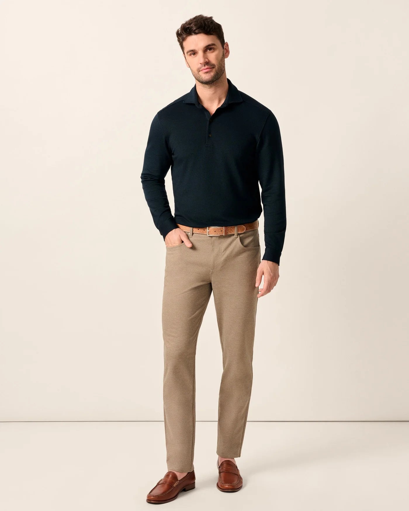 Burbank Stretch Knit 5-Pocket Pant in Khaki by Johnnie-O