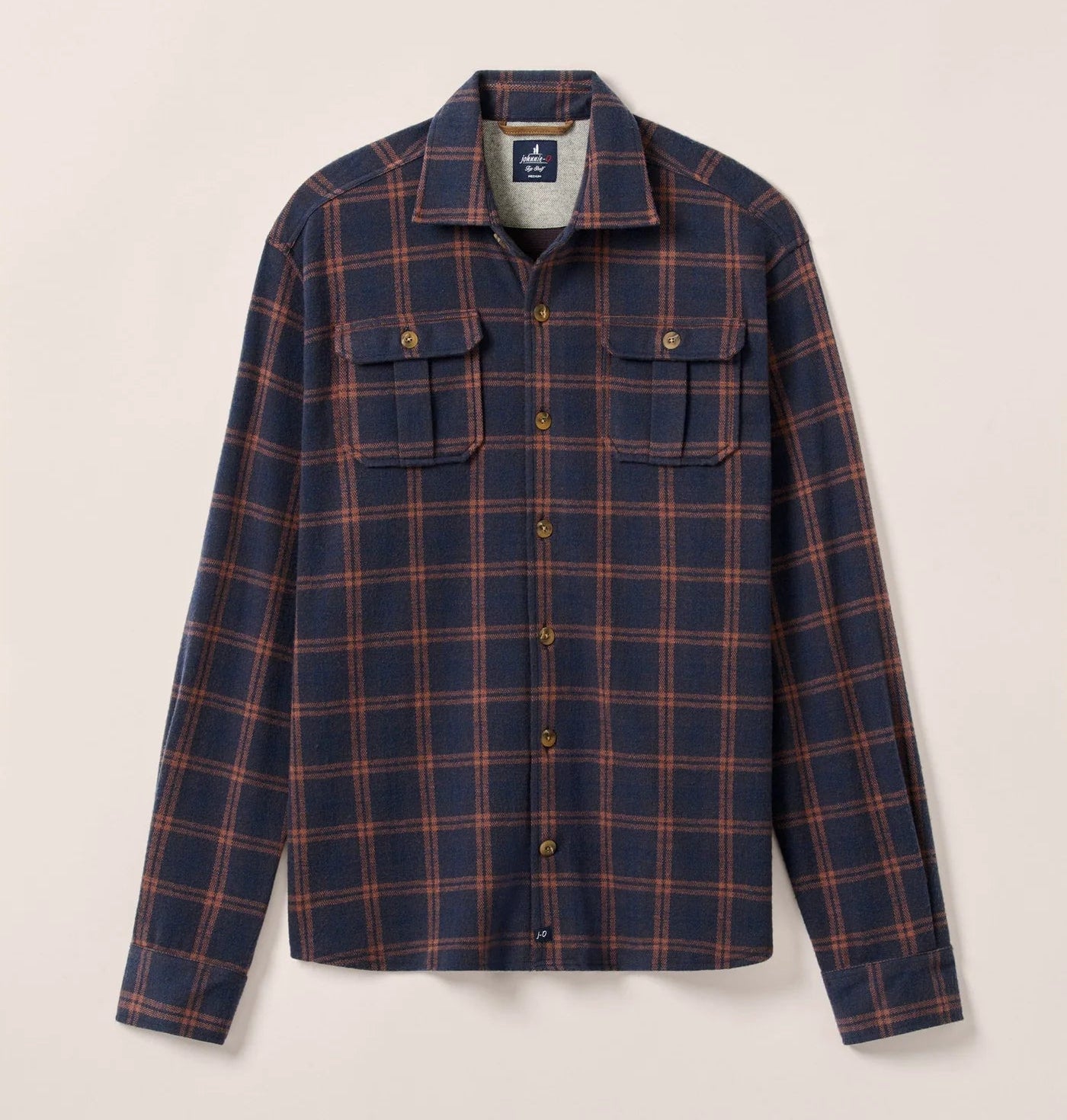 - "J-O" label on bottom placket