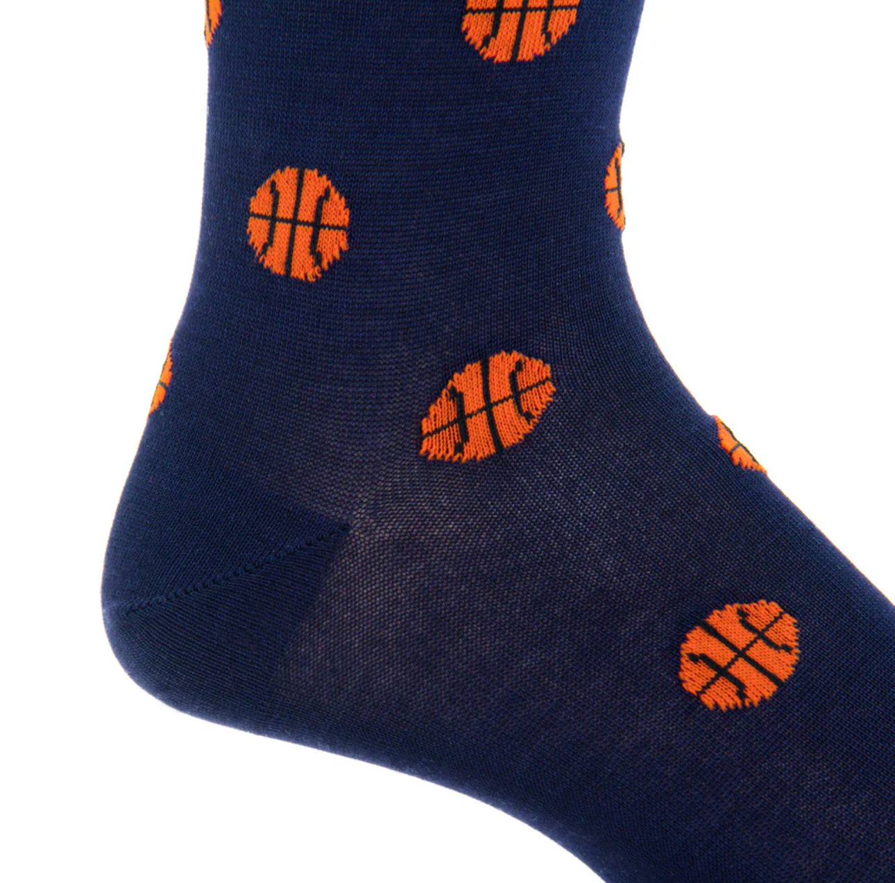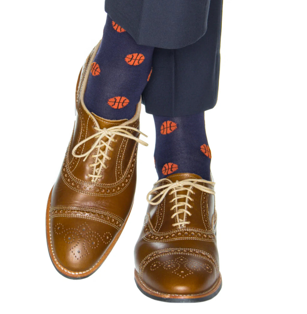 Classic Navy With Tigerlily Orange Basketball Mid Calf Socks by Dapper Classics