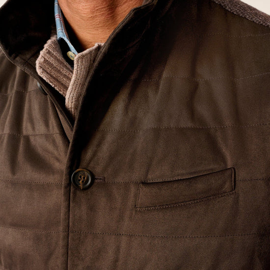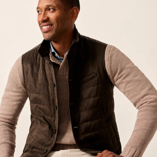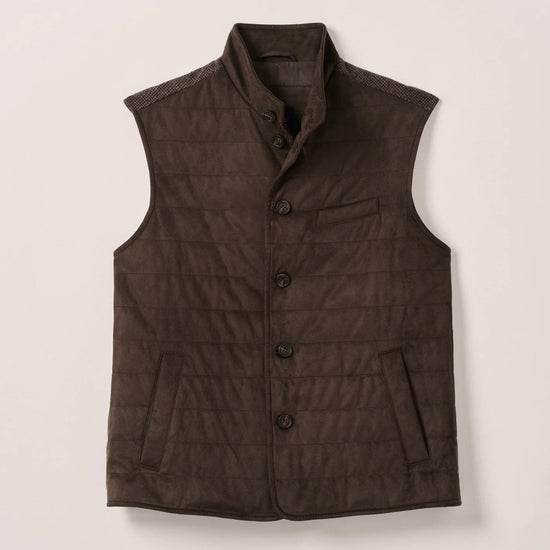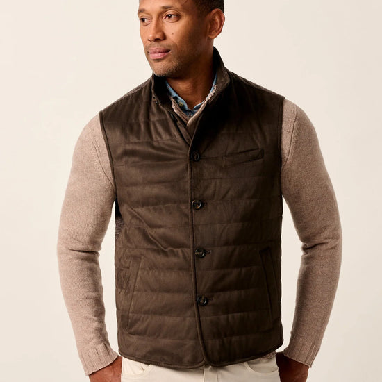 Corde Top Shelf Faux Suede Quilted Vest in Coffee by Johnnie-O