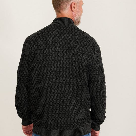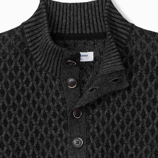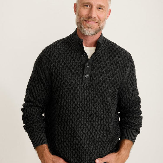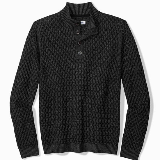 Cross Cable Button-Neck Sweater in Black by Tommy Bahama