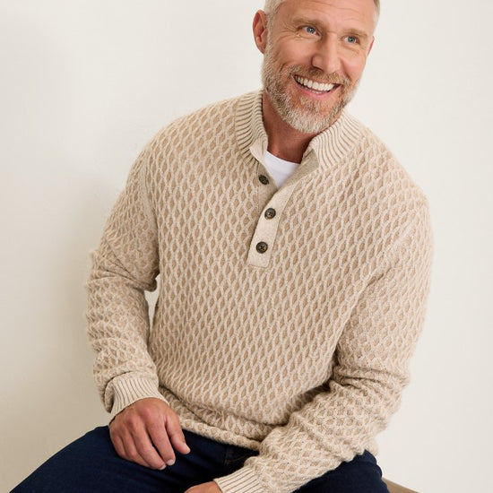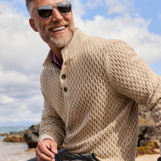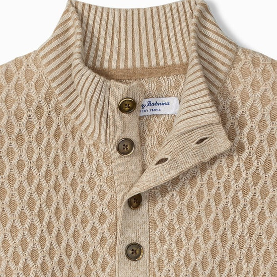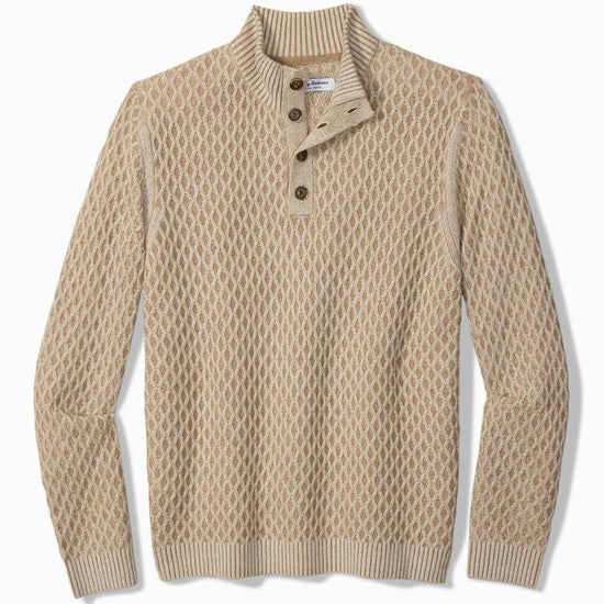 Cross Cable Button-Neck Sweater in Hazelnut Cream by Tommy Bahama