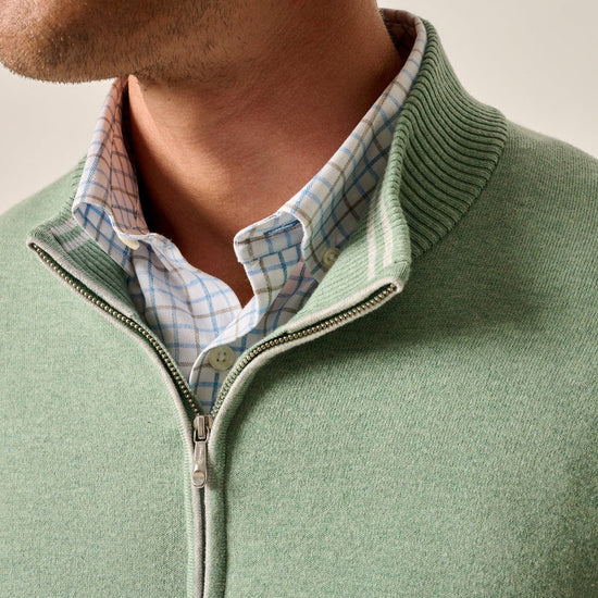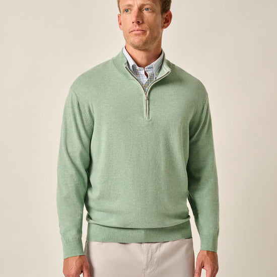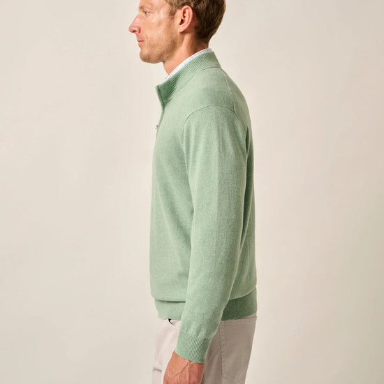 Desmond Plaited Cotton Blend 1/4 Zip Sweater in Green Grass by Johnnie-O