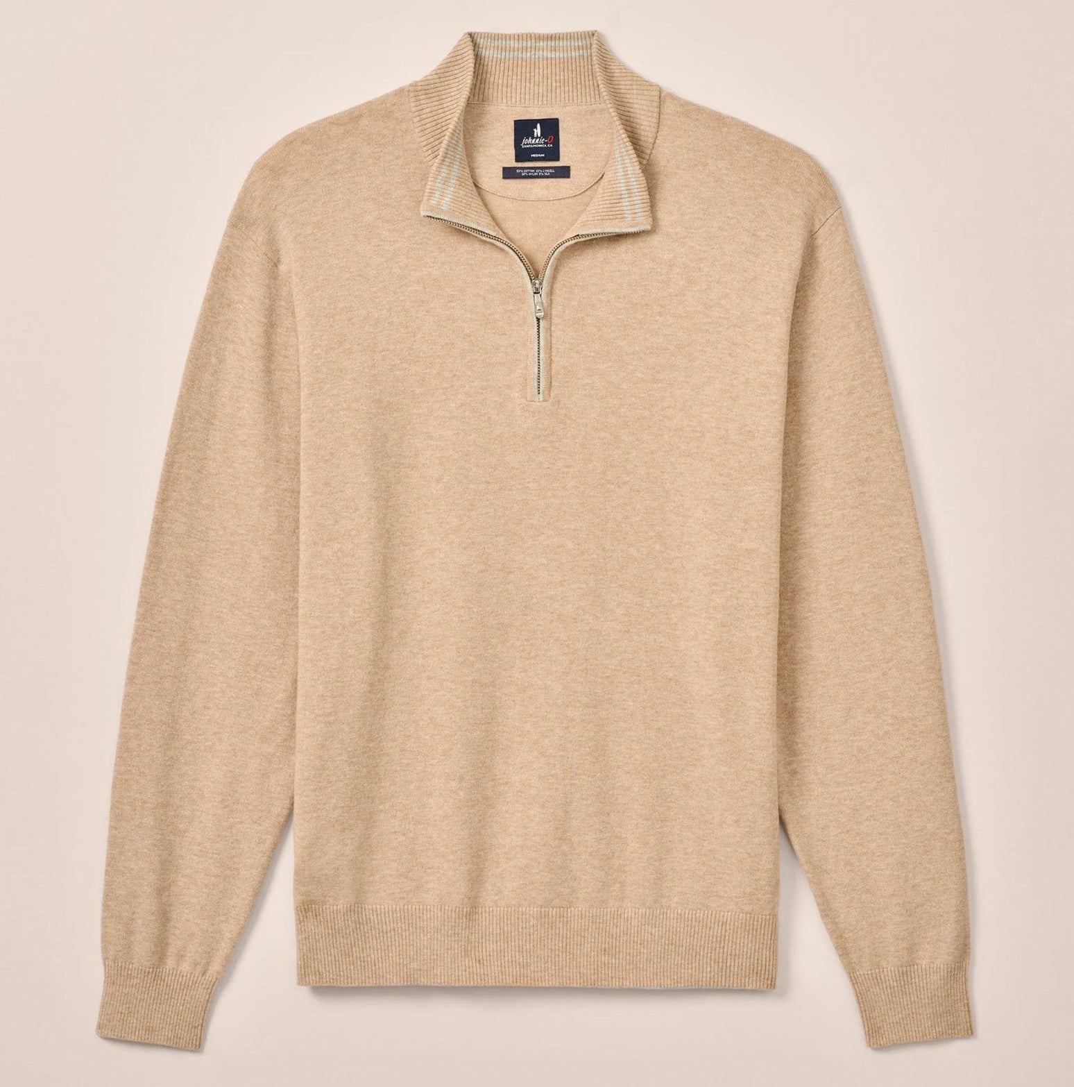 Desmond Plaited Cotton Blend 1/4 Zip Sweater in Sand by Johnnie-O