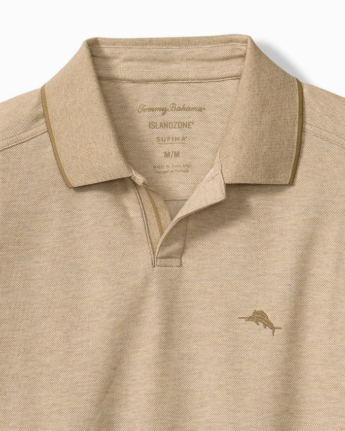 Emfielder Johnny Collar IslandZone® Polo in Stone Khaki Heather by Tommy Bahama
