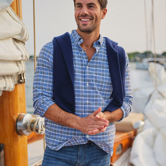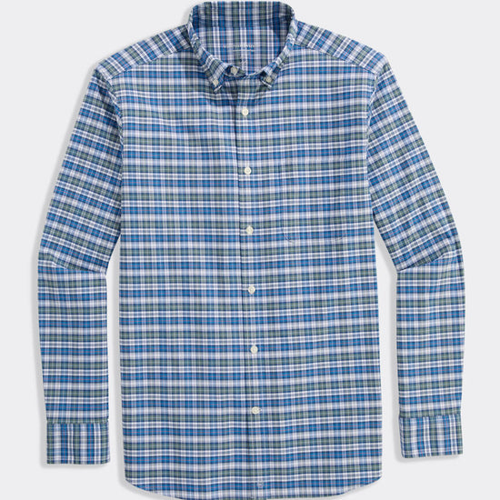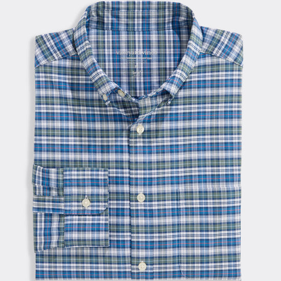 Faraway Plaid Performance Cotton Shirt in Balsam by Vineyard Vines