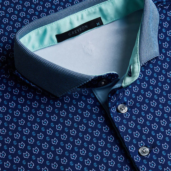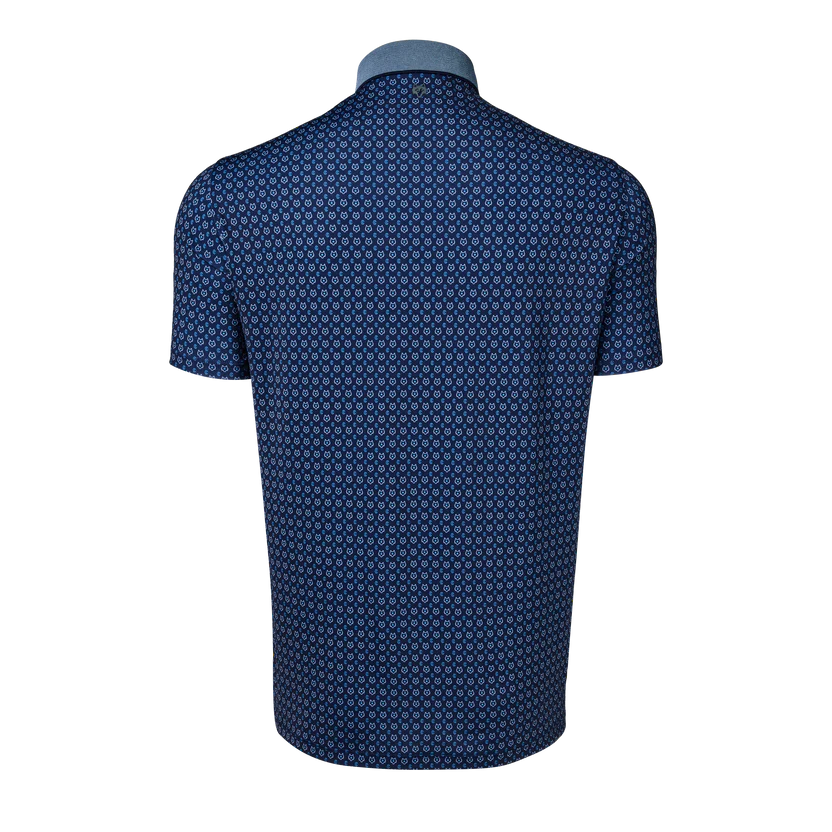 The Ghost Dreamer Polo is defined by a subtle, all-over wolf motif that brings character to a sleek performance silhouette. Made from breathable fabric that stretches with movement and dries quickly, it delivers comfort in any setting, from rounds on the course to casual meetings or post-game dinner. The refined print adds depth without overwhelming, offering an elevated take on graphic patterning. Finished with a knit cutaway collar and a four-button placket with contrast facing for a clean finish.