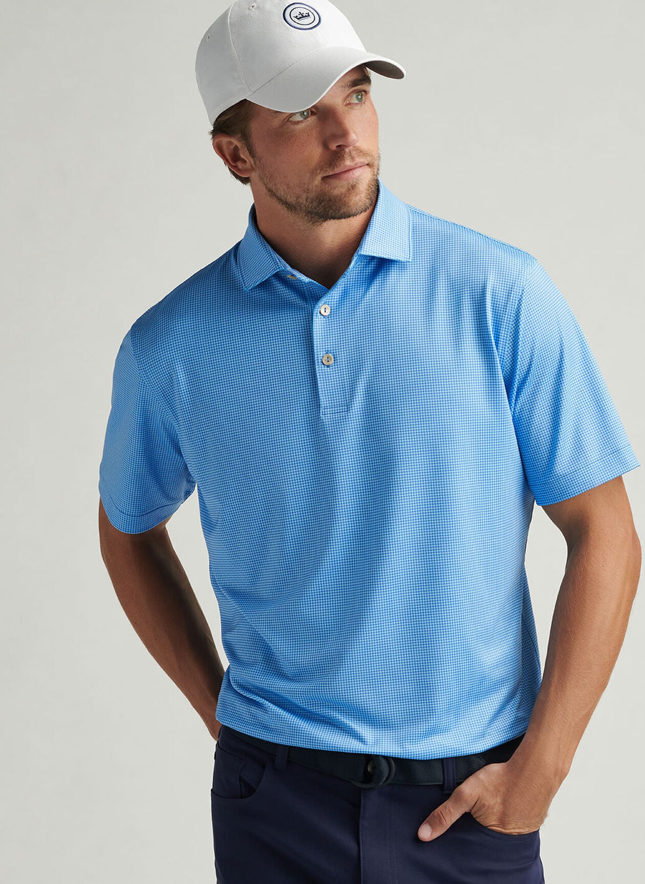 Gingham Performance Jersey Polo in Blue Sea by Peter Millar