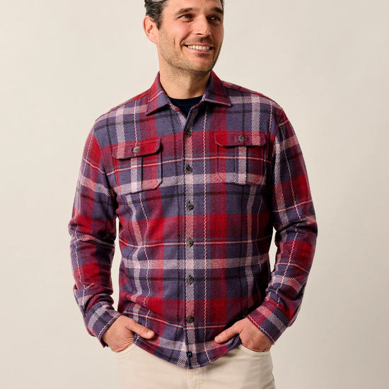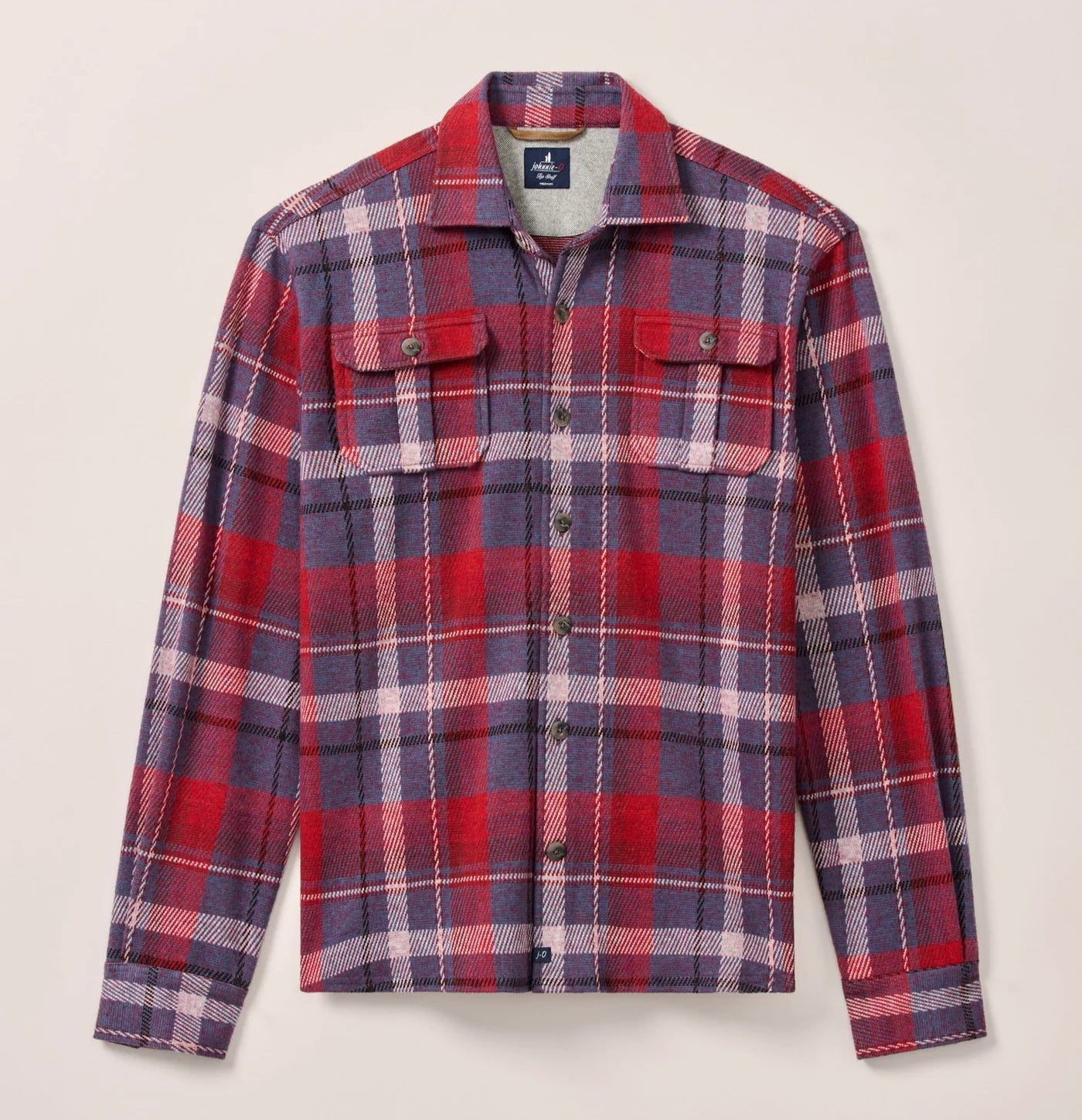 Gustaf Stretch Knit Flannel Lodge Shirt in Malibu Red by Johnnie-O