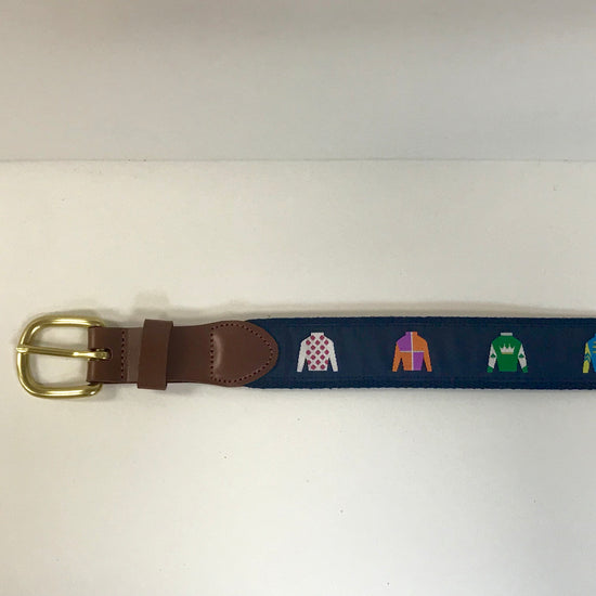 Jockey Motif Belt on Navy by Leather Man Ltd.