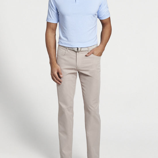 This polo offers sharp style and technical performance that make it a staple in any wardrobe. It’s constructed using a lightweight, easy-care jersey fabric that wicks moisture and stretches four ways for optimal mobility on and off the course. Innovative UPF 50+ sun protection delivers added coverage for long days spent outside. Styled with a classic stripe design for added visual appeal. Finished with a Sean self-fabric collar and three-button placket.
