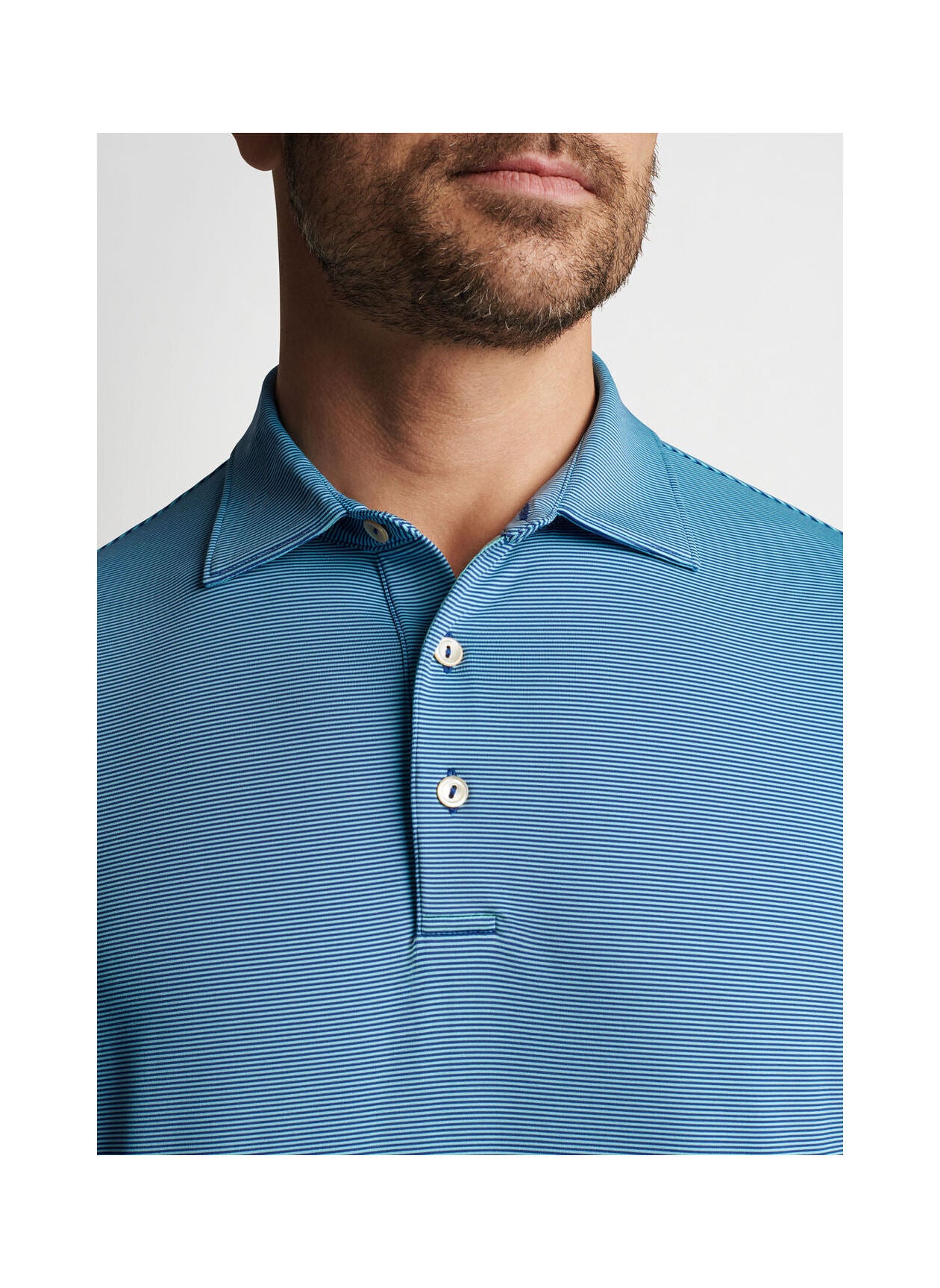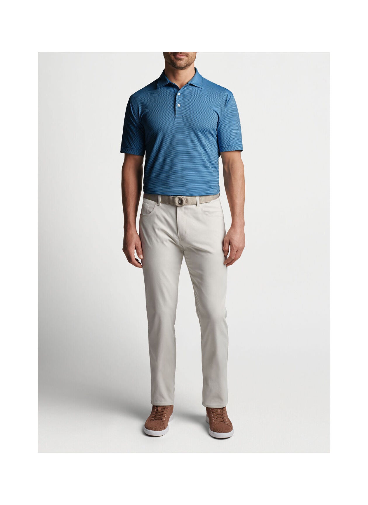 This polo offers sharp style and technical performance that make it a staple in any wardrobe. It’s constructed using a lightweight, easy-care jersey fabric that wicks moisture and stretches four ways for optimal mobility on and off the course. Innovative UPF 50+ sun protection delivers added coverage for long days spent outside. Styled with a classic stripe design for added visual appeal. Finished with a Sean self-fabric collar and three-button placket.