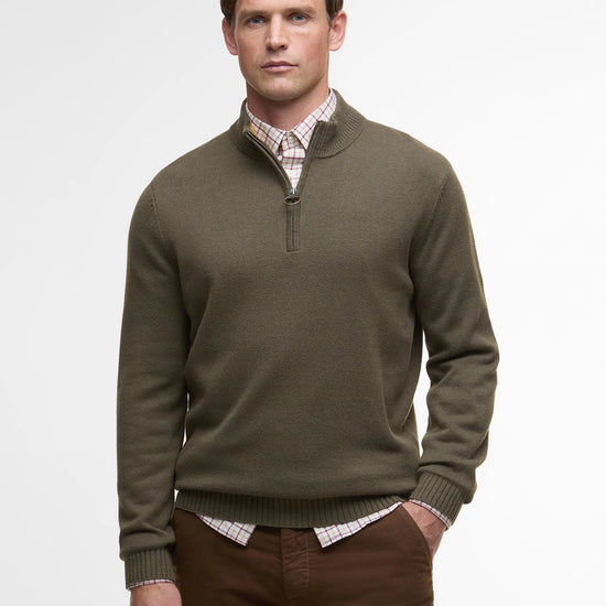 Introducing the Barbour Kelson Half-Zip Jumper, crafted from a premium wool-blend with ribbed half-zip neckline, cuffs and hem. This stylish and versatile piece is perfect for layering, adding a sophisticated touch to any outfit, suitable for a range of occasions.