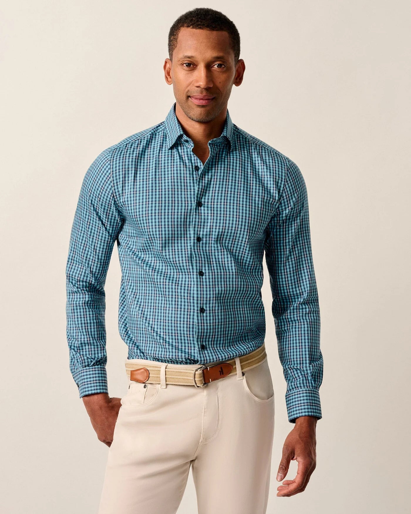 Made with a beautiful cotton blend that contains a bit of stretch and moisture-wicking properties, this is just like the sport shirt your dad used to wear only more comfortable.