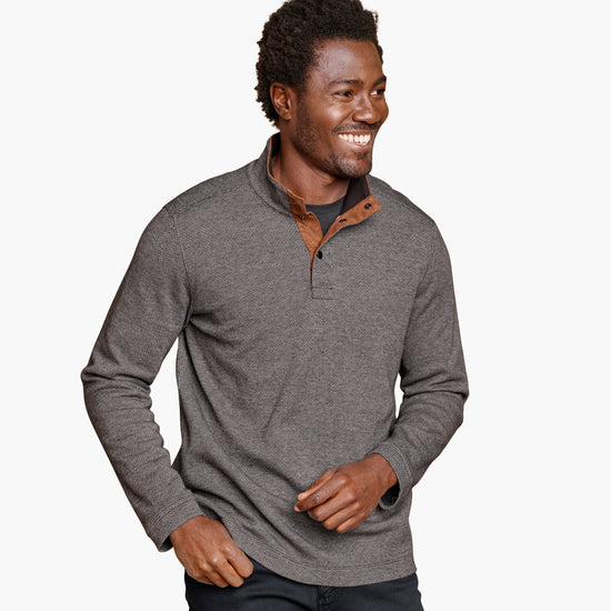 Knit Jacquard Quarter-Snap Pullover in Gray by Johnston & Murphy