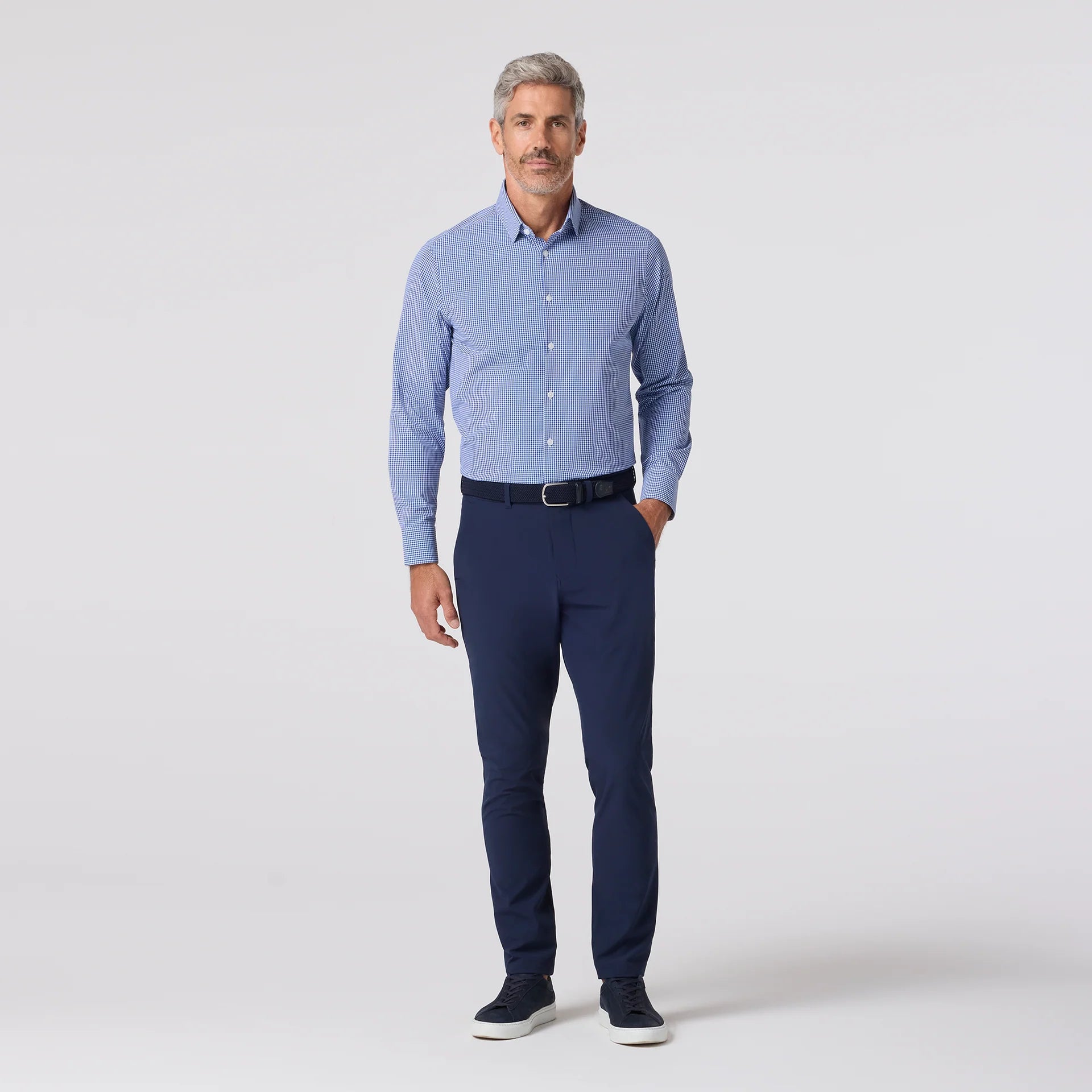 The Leeward is a lightweight, wrinkle-resistant performance dress shirt with built-in stretch. Designed for easy care, breathable comfort, and all-day wear—no dry cleaning needed.