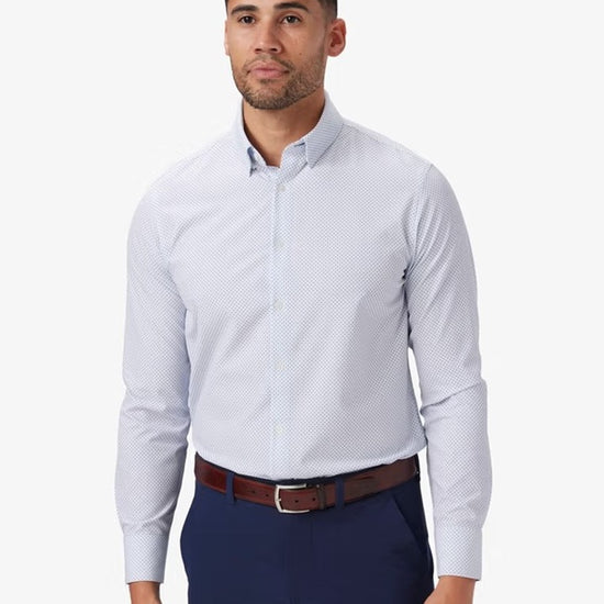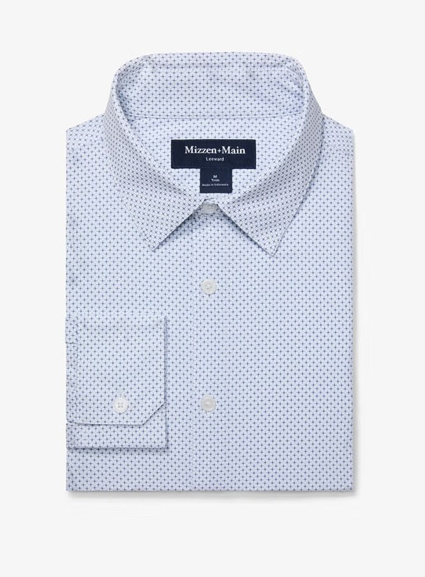 The OG. There’s a reason they (we) call this The Best Damn Dress Shirt. The world’s first performance fabric dress shirt is still the best one out there. There’s a reason customers who buy this shirt race to replace every single style in their closet with Mizzen+Main. All the benefits of athletic wear, disguised as a dress shirt. Made from high quality performance fibers, our White Plus Print Leeward dress shirt creates a comfortable, easy to care for dress shirt that is lightweight with superior quick-dry and stretch properties.