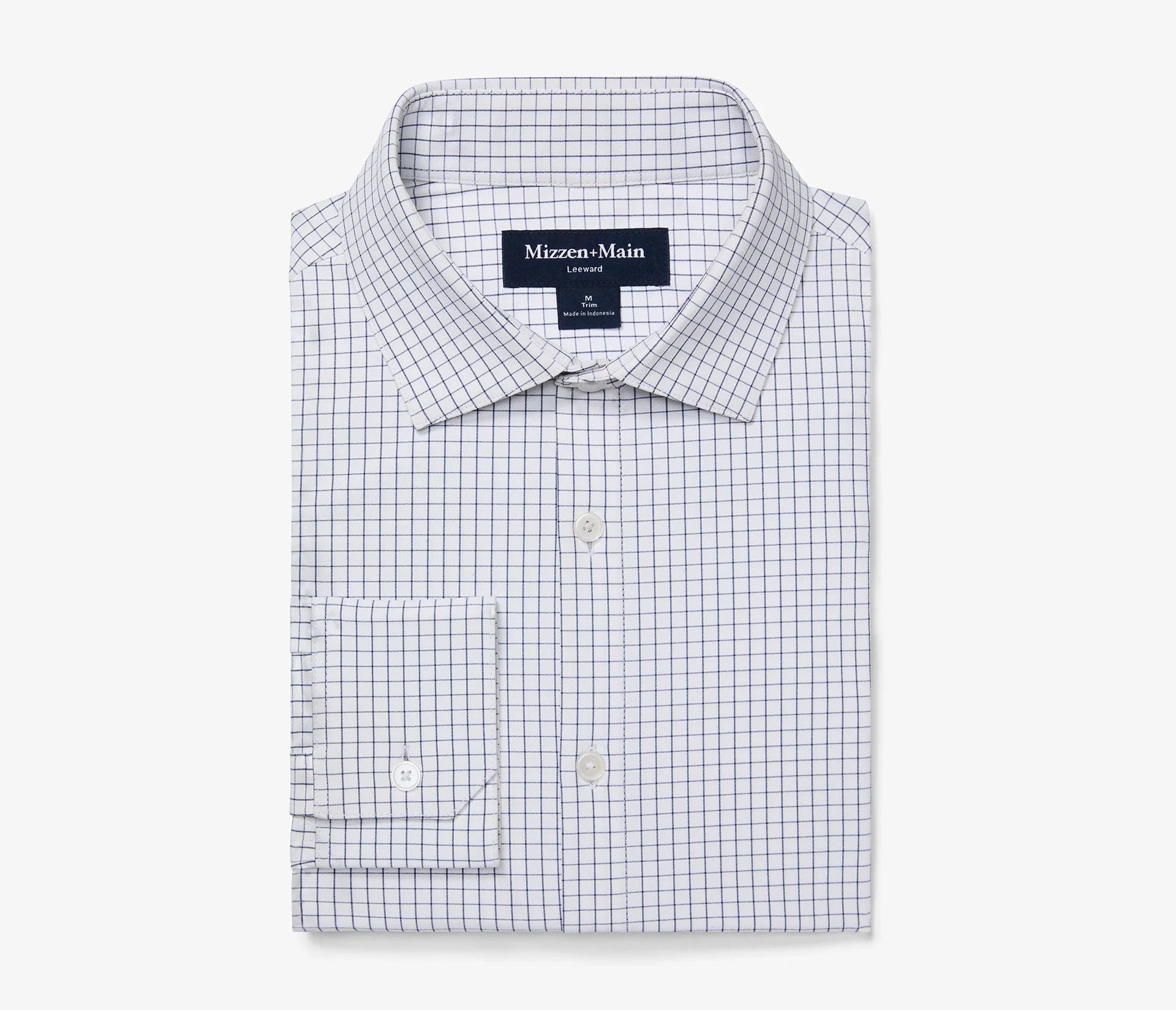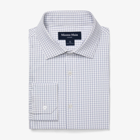 Leeward Long Sleeve Dress Shirt in White Navy Mini Grid by Mizzen+Main