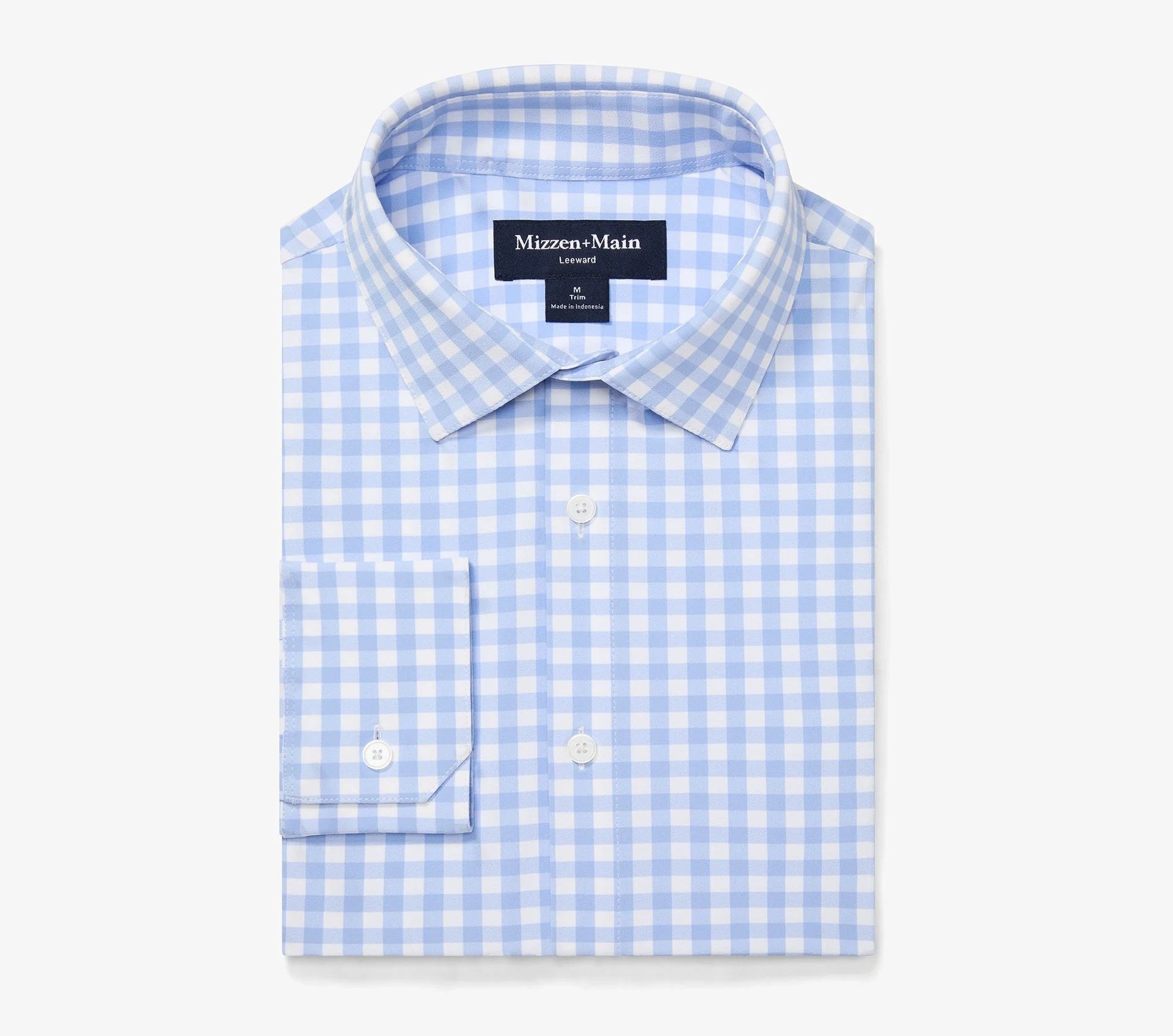 Leeward Long Sleeve Dress Shirt in Light Blue Gingham by Mizzen+Main