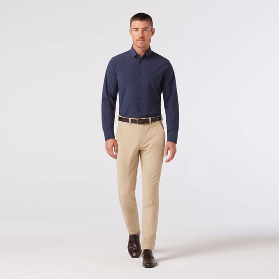 The Leeward is a lightweight, wrinkle-resistant performance dress shirt with built-in stretch. Designed for easy care, breathable comfort, and all-day wear—no dry cleaning needed.