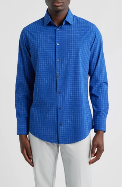 Leeward No Tuck Dress Shirt in Cobalt Manor Plaid by Mizzen+Main