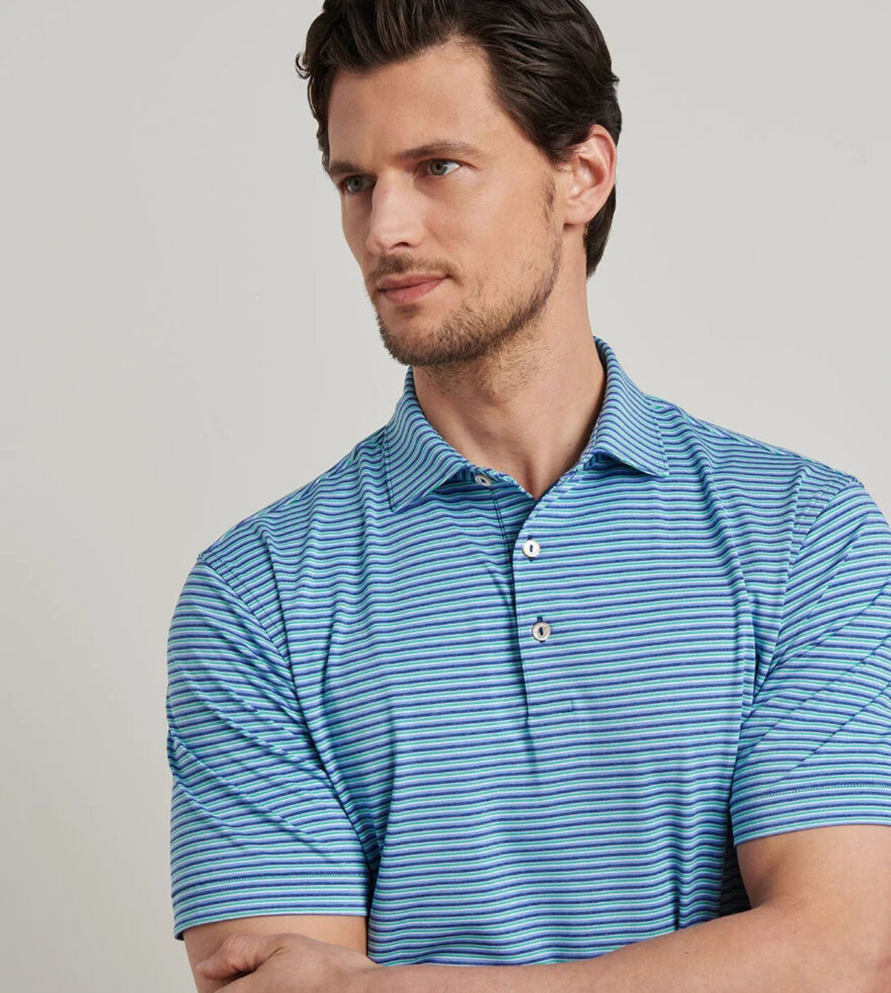 Our Summer Comfort jersey polos are gold standards for softness and exceptional performance. These are packed with four-way stretch, wicking and UPF 50+ protection in our signature Summer Comfort fabrication. Finished with a spread collar and three-button placket.
