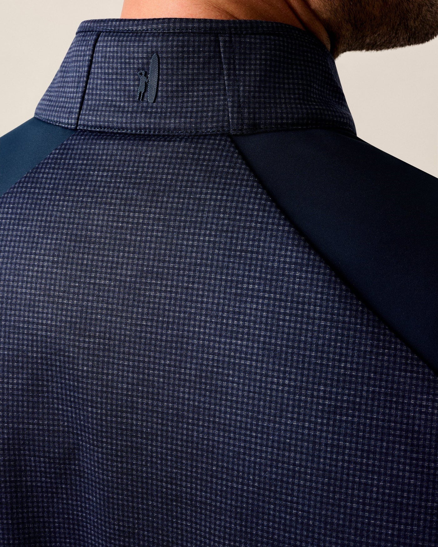 - Tonal logo on center back neck