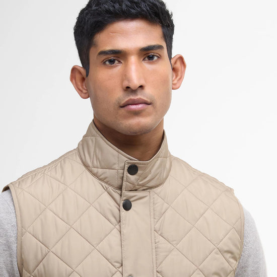 A staple of our menswear range, the Barbour Lowerdale gilet is inspired by our equestrian heritage. Constructed in our signature diamond-quilted fabric, it's styled with a stand collar trimmed with microfiber for a soft feel and extra warmth. This new fit of our classic Lowerdale gilet features two stud-close patch pockets and a two-way front zip for versatile wearability, while a studded storm guard helps keep out rain and wind.