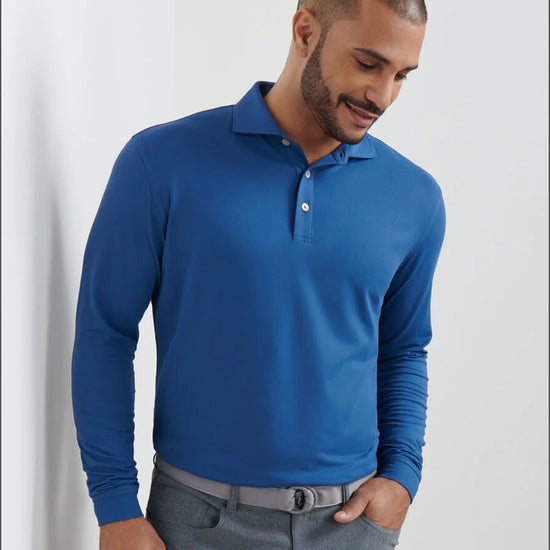 Enjoy incredible comfort wherever your day takes you in one of our signature long-sleeve performance polos. It's made from a soft jersey fabric that features moisture-wicking, UPF 50+ sun protection, odor-resistance and easy-care, with four-way stretch for optimal mobility on and off the golf course. Finished with an Edwin self-fabric collar and three-button placket.