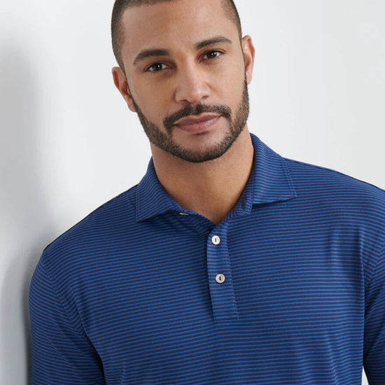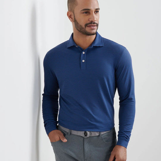 Lyons Stripe Performance Jersey Long-Sleeve Polo in Navy by Peter Millar