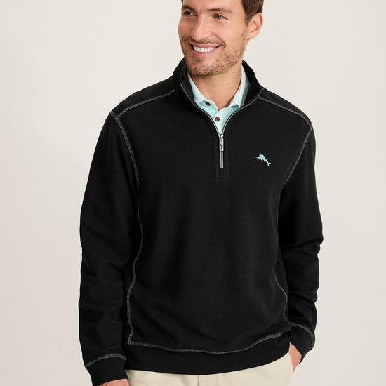 Montego Beach Half-Zip Sweatshirt in Black by Tommy Bahama