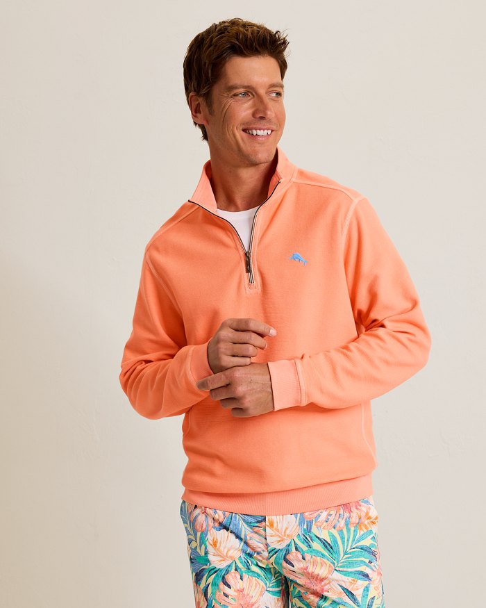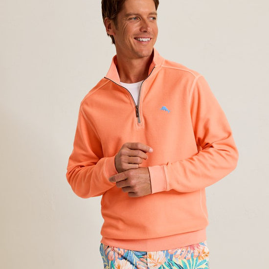 Montego Beach Half-Zip Sweatshirt in Bright Peach by Tommy Bahama