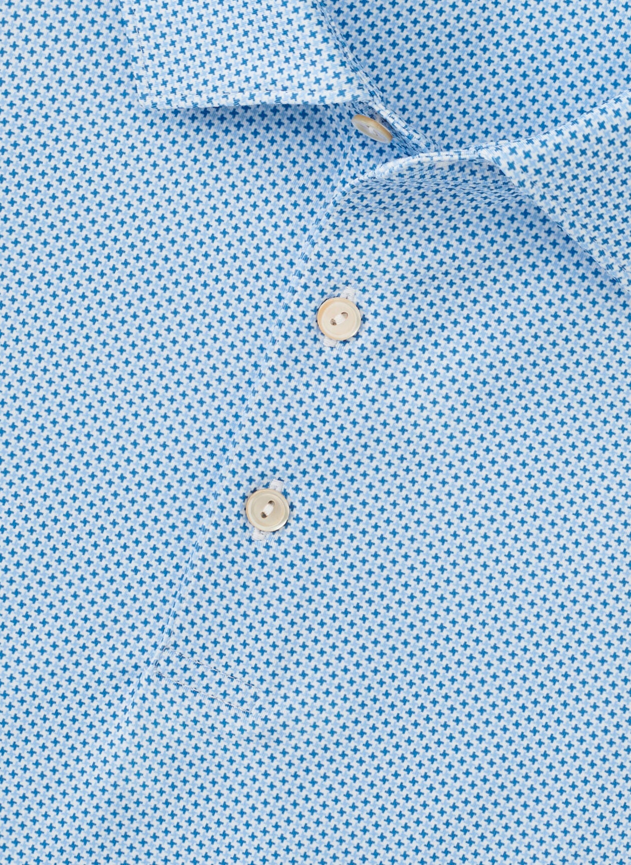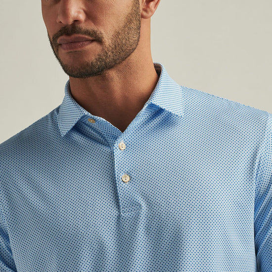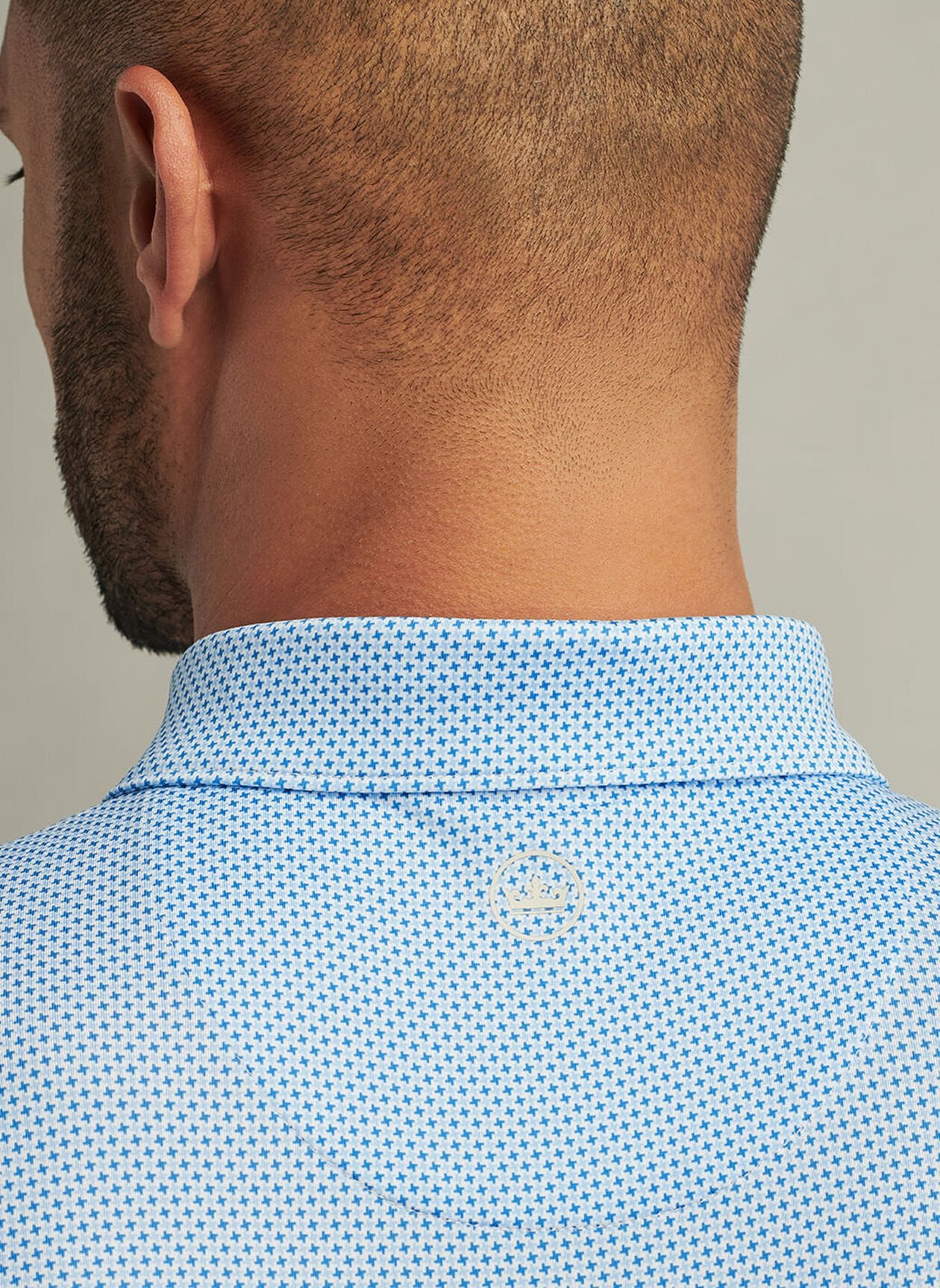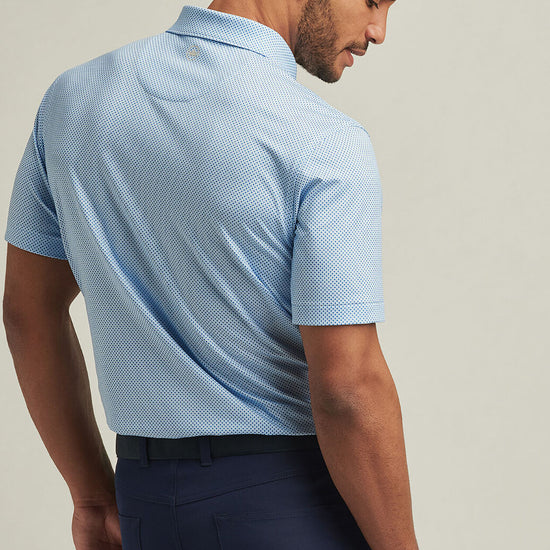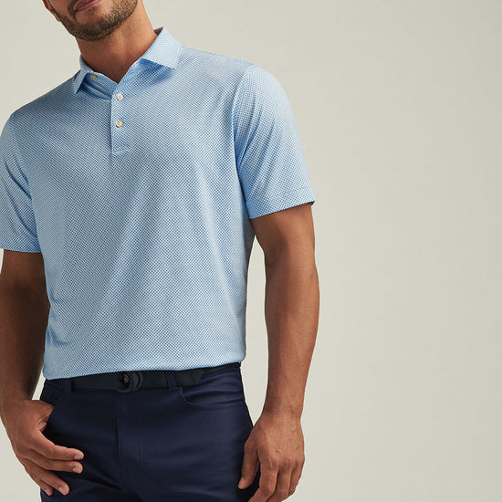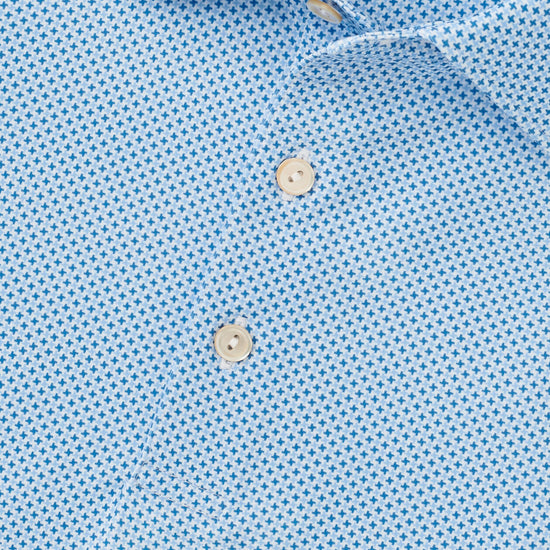 Summer is all the time in our performance jersey polos. These are packed with four-way stretch, wicking and UPF 50+ protection in our signature Summer Comfort fabrication. This polo features a custom-designed geometric print. Finished with a spread collar and three-button placket.