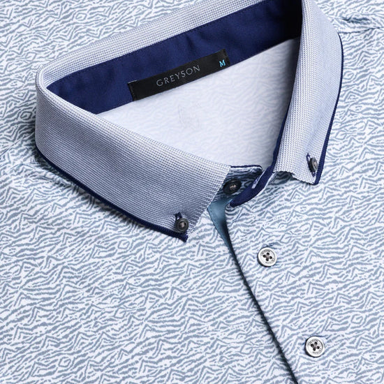 The Range Short Sleeve Polo is crafted from lightweight performance fabric that delivers breathability, quick-drying function, and anti-odor technology. Featuring an all-over abstract topographic print that nods to its name, it includes a button-down knit cutaway collar and a four-button placket with contrast detailing under and at the top for understated sophistication. The open hem and cuffs offer a comfortable fit that moves with you throughout the day, making it ideal for the course or everyday wear.