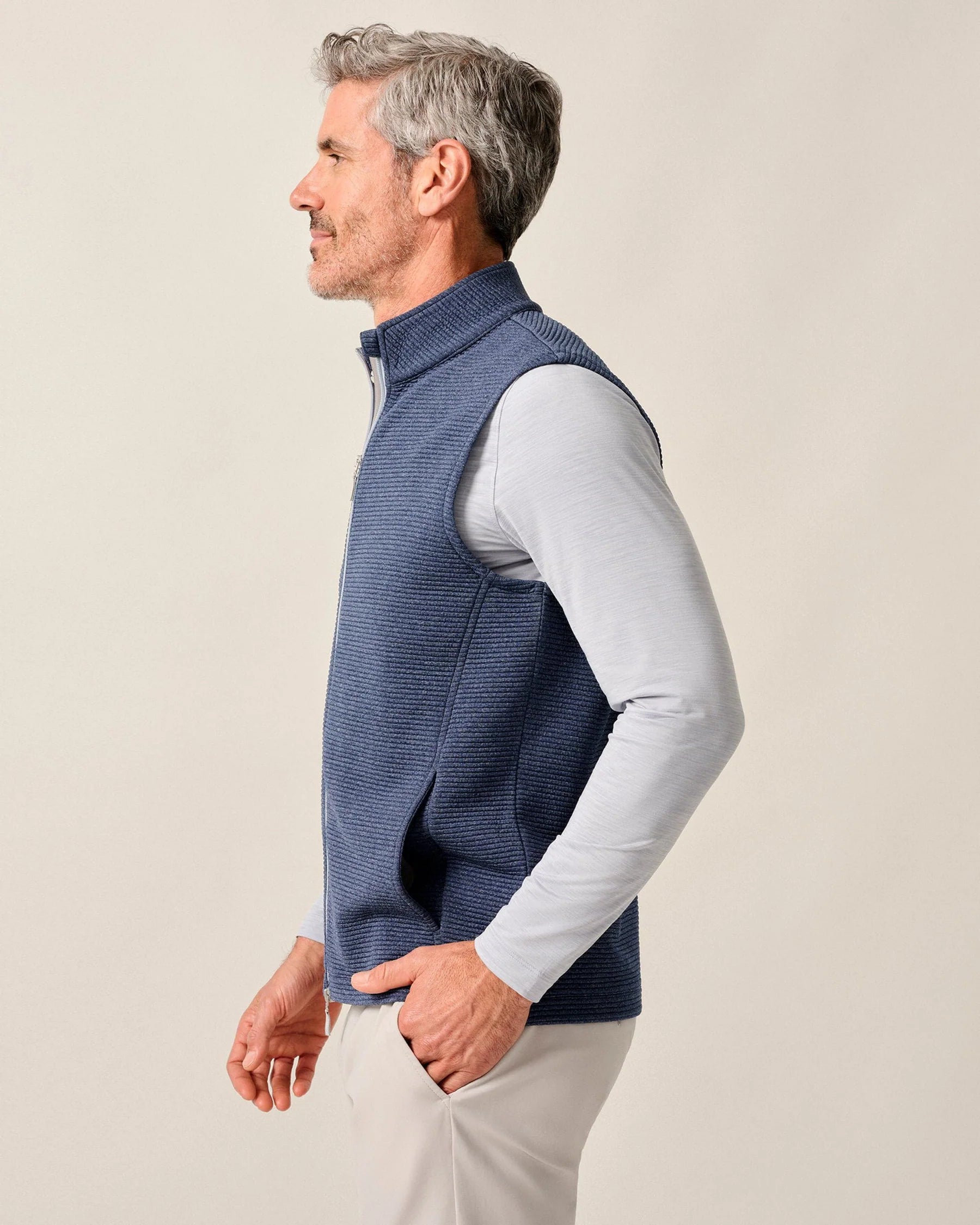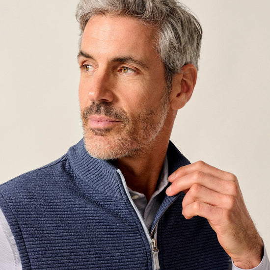Reggie Ribbed Performance Vest in Navy by Johnnie-O