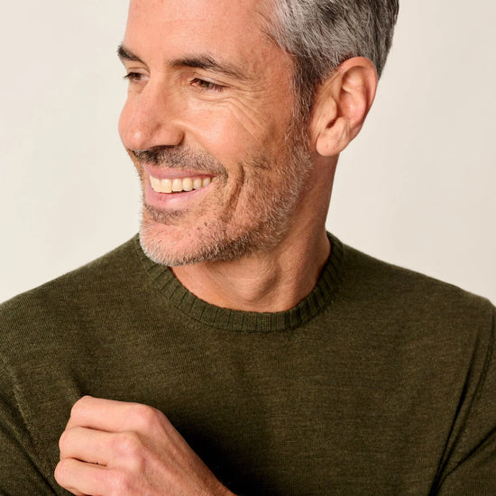 A classic that belongs in every guy's closet, this ultrasoft 100% merino crewneck sweater keeps your warm without extra weight.