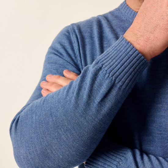 A classic that belongs in every guy's closet, this ultrasoft 100% merino crewneck sweater keeps your warm without extra weight.