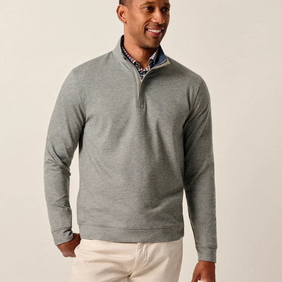 Rubin Herringbone Cotton Cashmere 1/4 Zip Pullover in Charcoal by Johnnie-O