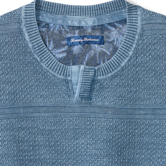 This Abaco sweater from Tommy Bahama is crafted of cotton and washed in saltwater for lived-in softness and casual appeal. Crafted from 100% premium cotton, this shirt offers exceptional comfort and breathability. Its textured fabric adds subtle visual interest while maintaining a lightweight feel.